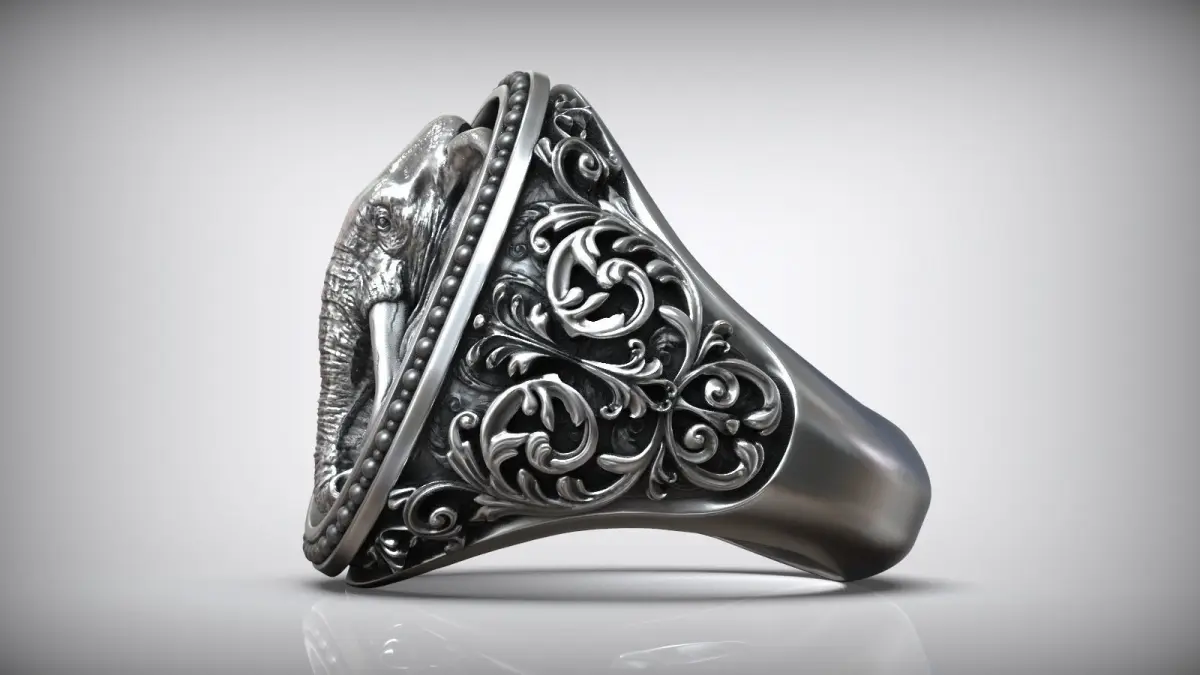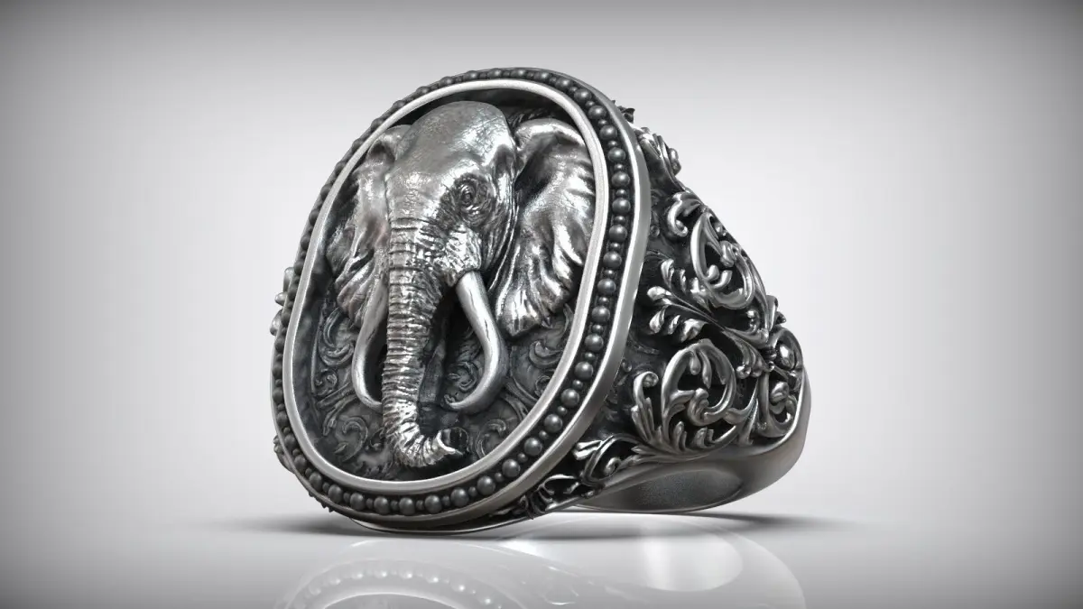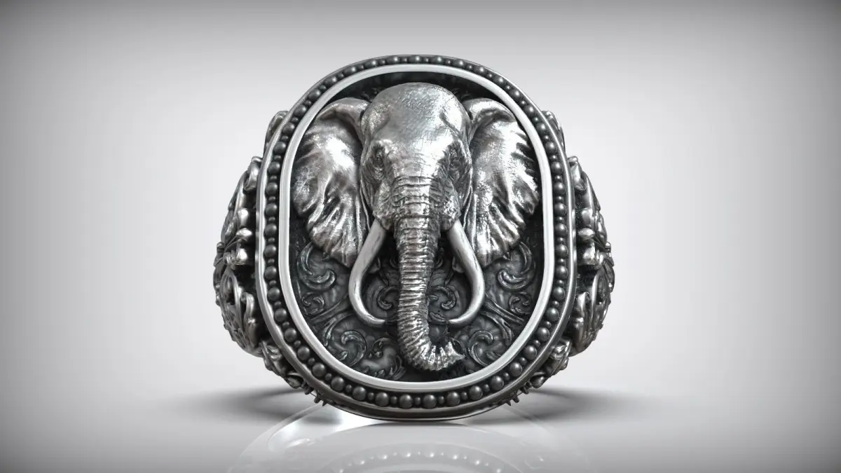 Unique Elephant Head Savannah Pattern Men Signet