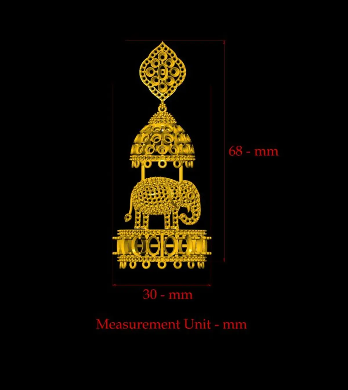 This is a jewelry CAD file, 3dprint file, stl file. For jewelry CAM and casting. Model name is :- ”Elephant Jhumka Earring - 09 “. This file is for jewelry manufacturing company or other 3D printing ornaments manufacturing company. This Elephant Jhumka Earring - 09 is ready for jewelry CAM and casting or any type of 3D-printing. You can find all details of the product in product image. I give you (stl, 3dmstl and obj ) file format in zip file.