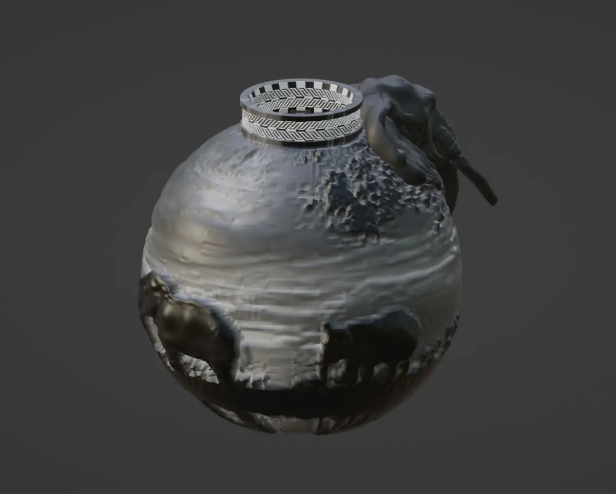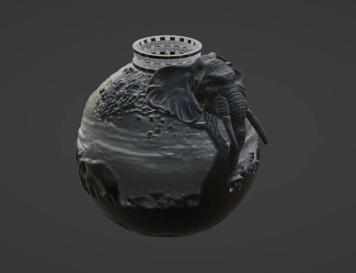 The vase with elephant figure is print ready model. You can find .dae, .fbx, .obj(with metarials), .ply, .stl, .x3d files for 3d printers. If you have any questions please let me know.Thanks.