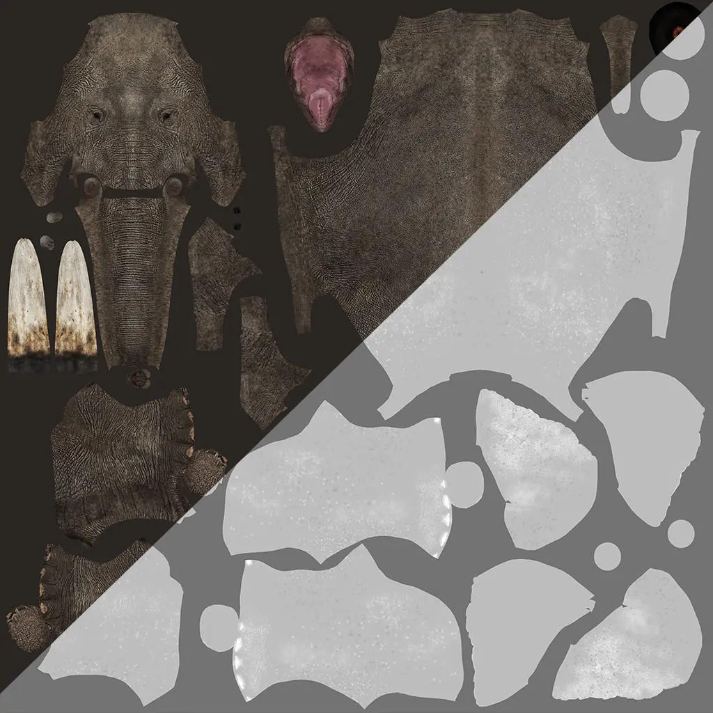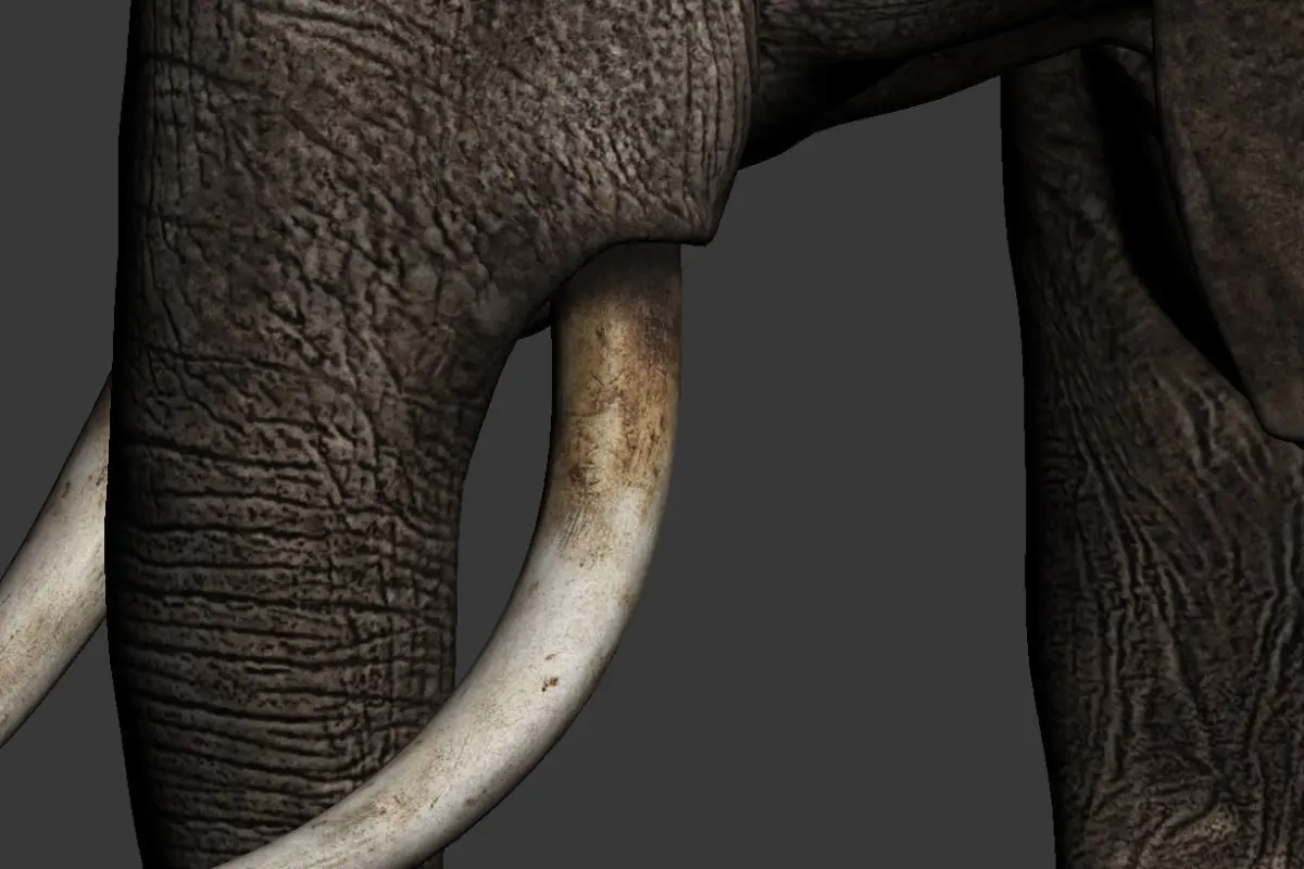 - eyes, corneas and tusks are modeled separately -fur( separety mesh)