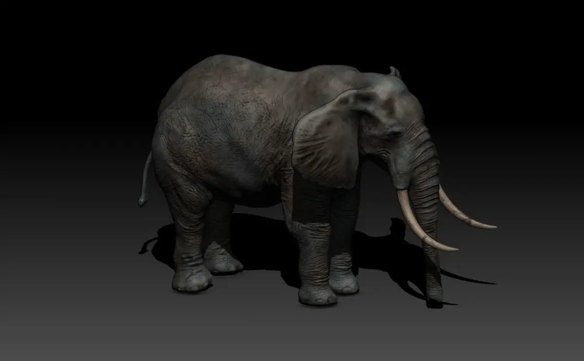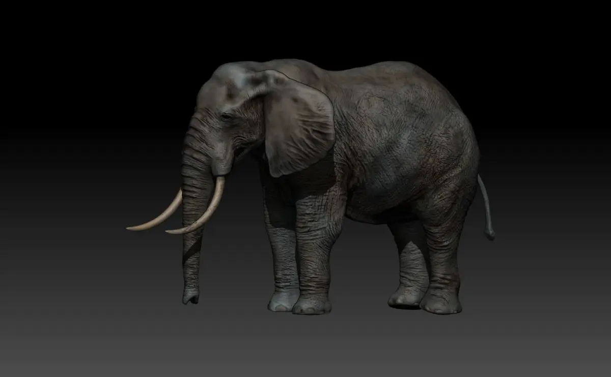 An Elephant modelled initially in Zbrush with subtools for tusks and eyes ( file available on request if purchased) highest polycount was 20m, retopologised and technically a low poly version now. The zbrush model has polypaint textures applied. The youtube clip shows the process of the build. The textures were created in substance painter using PBR workflow.I am always here to help if you purchase a model.