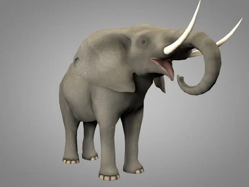 The model has texture map at tex_elephant.zip. Also the model has two animations: walk and eat.