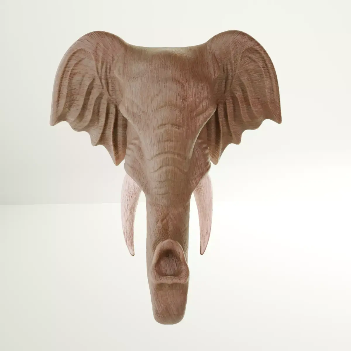This high-quality stylized wooden elephant head sculpture is designed as a decorative wall-mounted art piece suitable for modern, rustic, or natural-themed interiors.