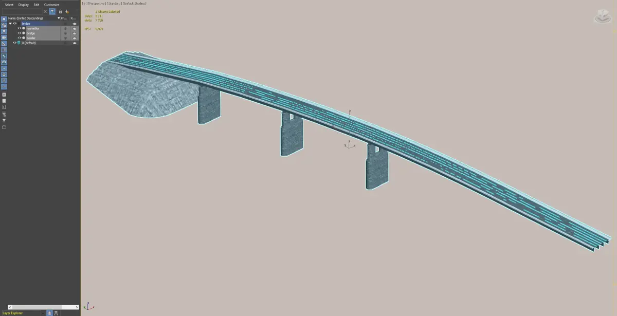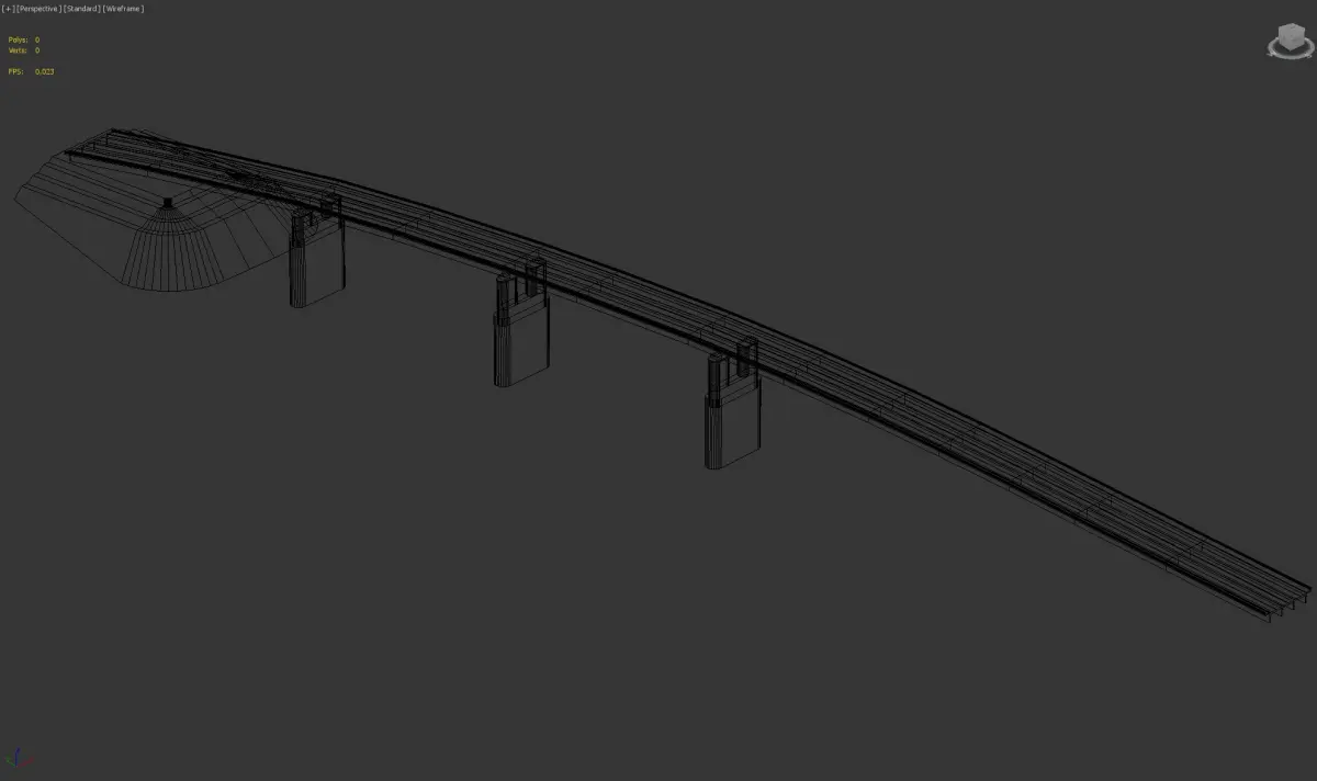 A realistic highway bridge model featuring concrete supports and a sloped approach, ideal for infrastructure visualizations.