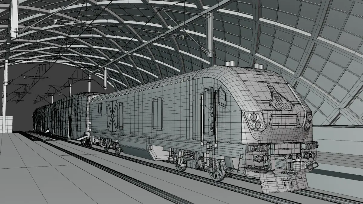 - This is 3D model of railway station with locomotive Siemens SC-44 and Bombardier BiLevel cab car and wagon.