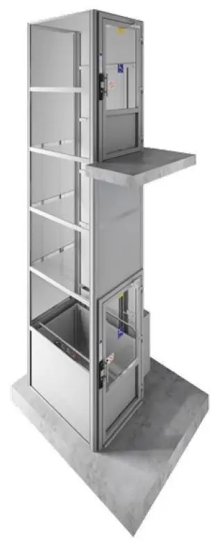 Lifting platform for accessibility inside buildings. It can be used by people in wheelchairs or with reduced mobility, works both indoors and outdoors. made of metal (aluminum). Doors can be one-sided or opposite.