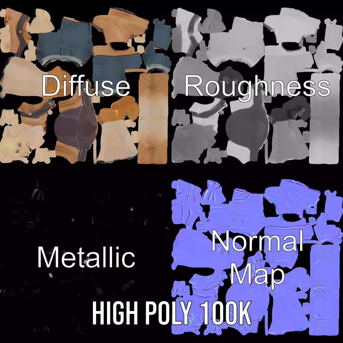 This 3D model pack features a detailed elf character dressed in a casual outfit. Each model has 3 levels of detail: low-poly (1000 triangles for mobile), middle-poly (10,000 triangles for environment), and high-poly (100,000 triangles), which allows for use in production rendering, game engines, and interactive presentations, based on the LOD System principle. This model is perfect for fantasy games, animations, and storytelling, providing a unique and charming character. The model's textures are PBR, Diffuse, NormalMap, and reflection/roughness/metallic, fitting for any modern rendering engine. All models are accurately unwrapped with no overlapping UV. All textures are 4096x4096 in size.