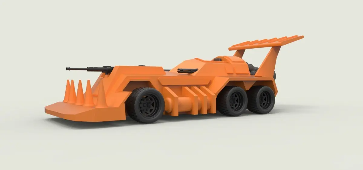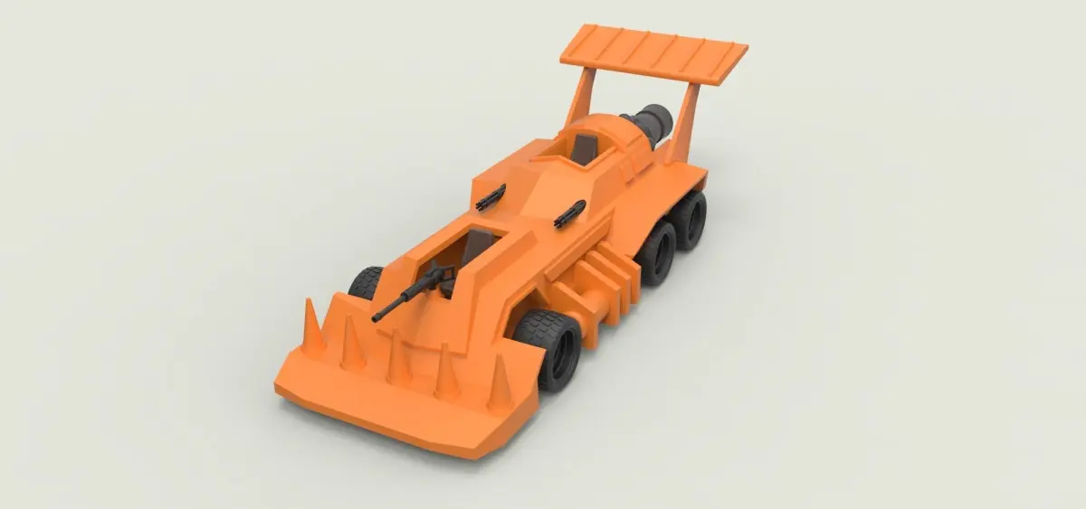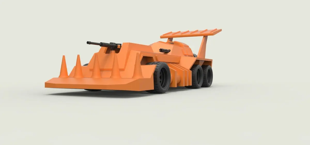 Model consists of parts: body, jet engine, front gun, spoiler, spikes, gunmachines, seats, wheels, pins.