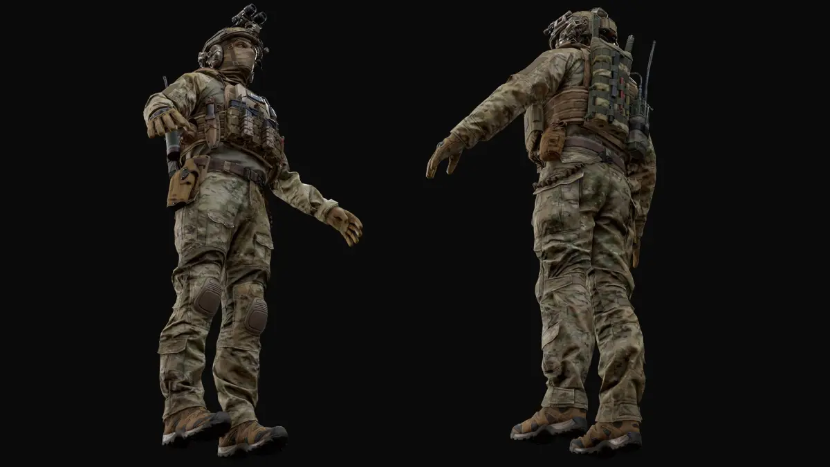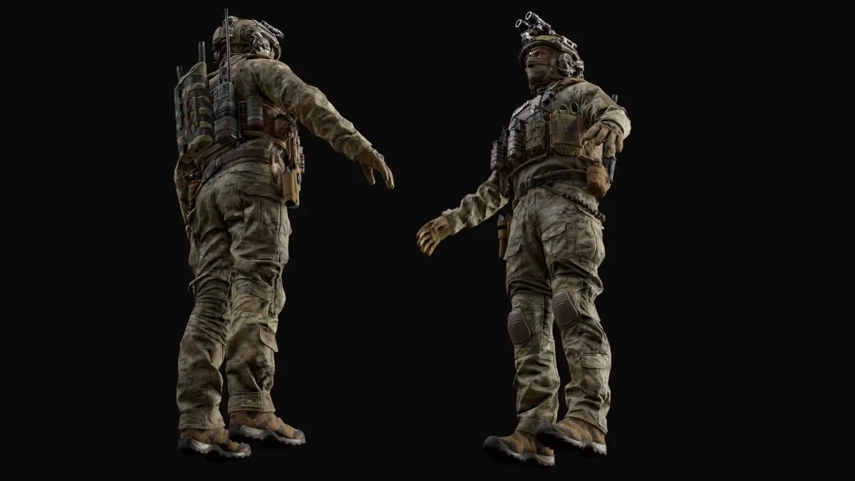 - 5 texture sets (helmet with gear, head, upperbody, lowerbody, upperbody's equipment);