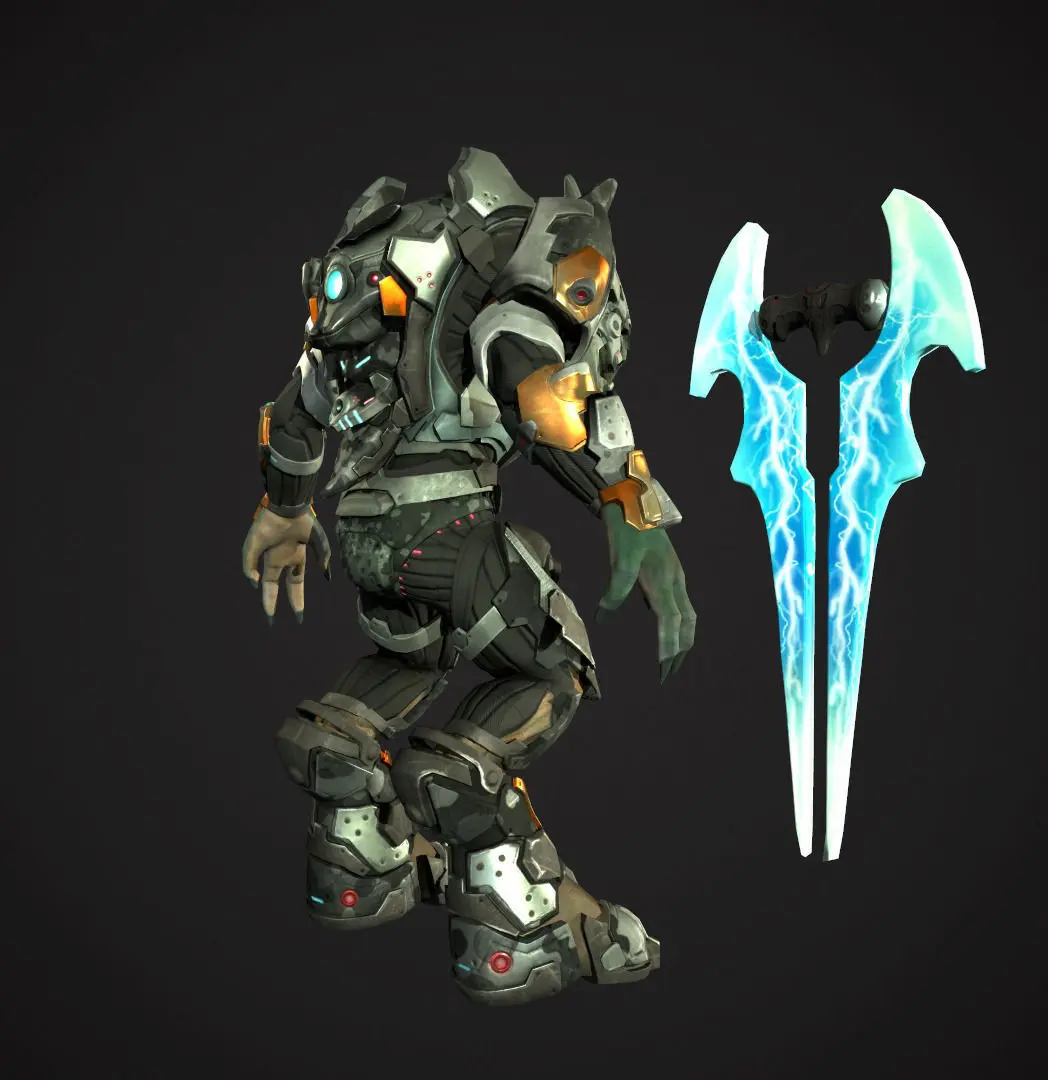 this char have 5 parts, head upper, lower, muscle and sword, i tested in marmoset.