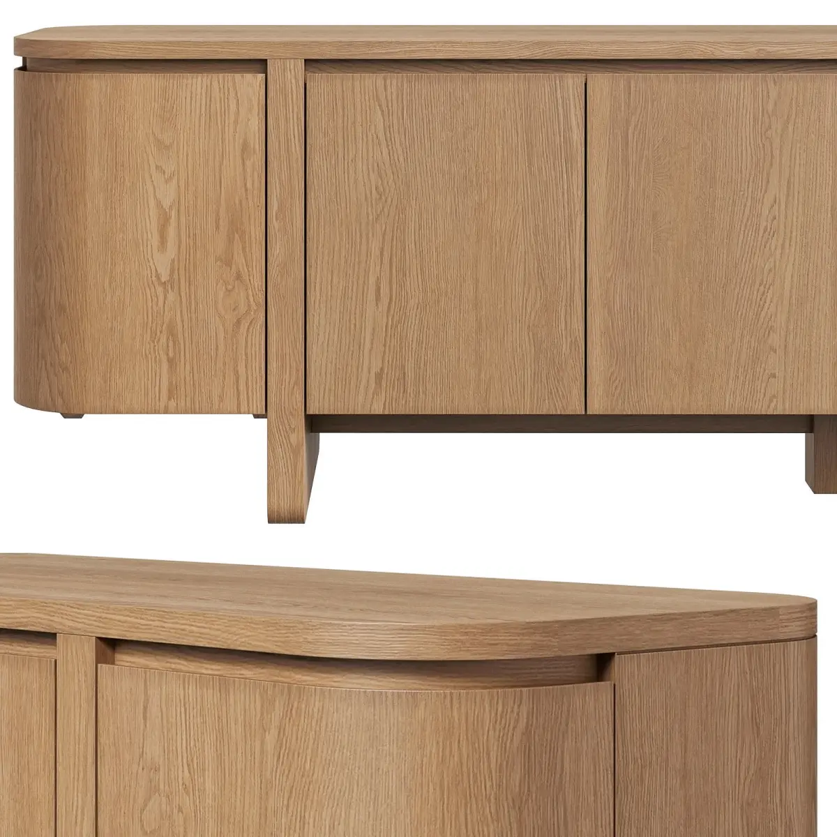 A clean-lined media console crafted from warm, richly textured oak. The six doors feature subtle finger grooves for easy opening. Smooth curves soften the look, while the floating design keeps things light and airy.The model is assembled for subdivision. When using import formats, please apply MeshSmoth/TurboSmoth with 2-3 iterations.https://fourhands.com/product/241763-001Dimensions: 92w x 19d x 26"h