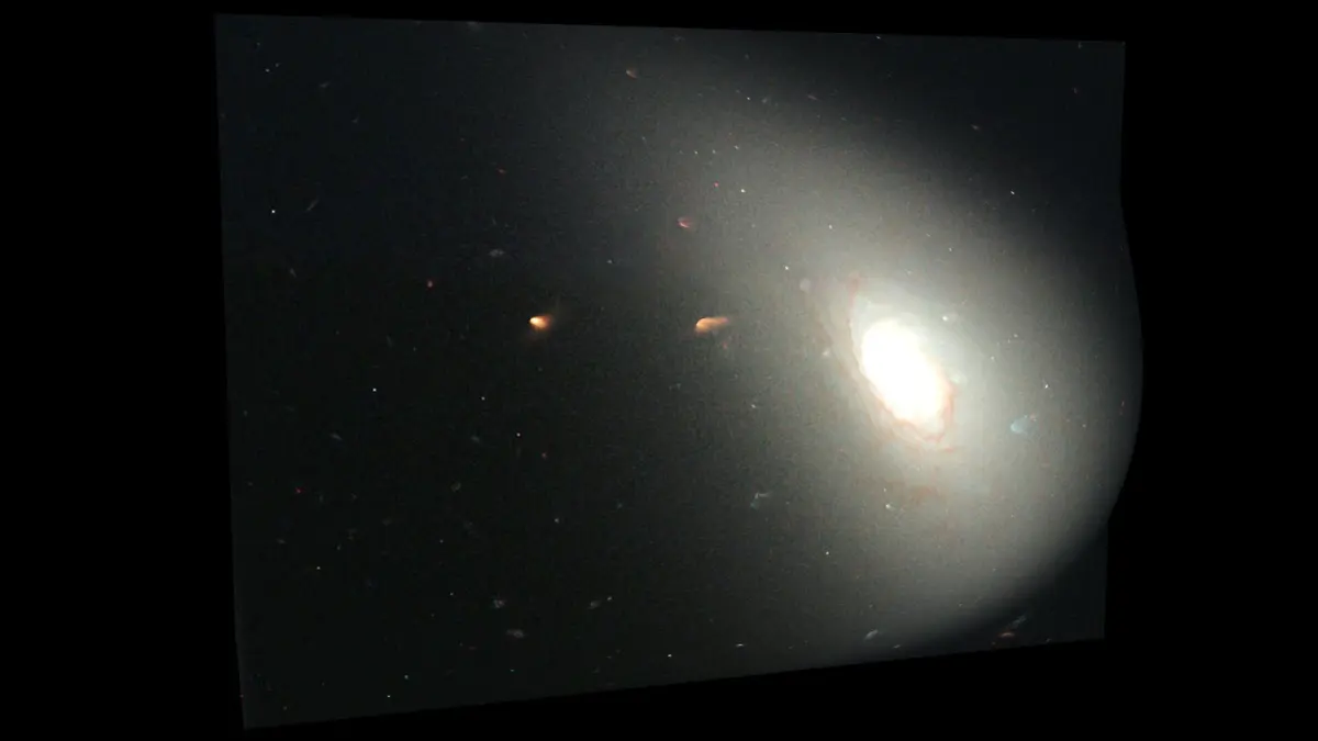 Model is a set of particle systems with elements of different types. Since real Elliptical Galaxy contains hundreds of billions stars, there are no way of simulate realistic view of galaxy directly. So here used textured particles with complex materials, placed along structural parts of Galaxy. Some of them are “clouds” of stars, others are light absorbing dust, emitting hydrogenous clouds, individual super-giant stars, etc. Multi-layered complex shaders was specifically designed to retain detailed and realistic view with extreme closeup and inside-the-galaxy views