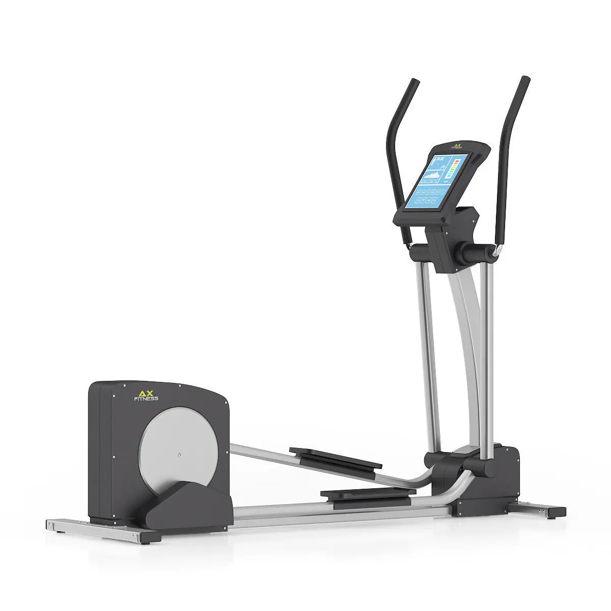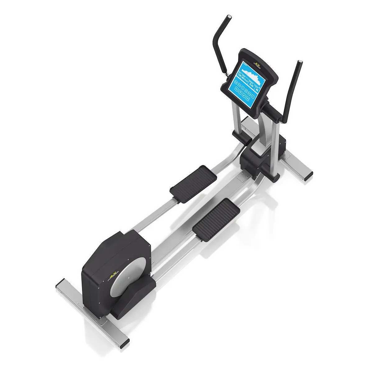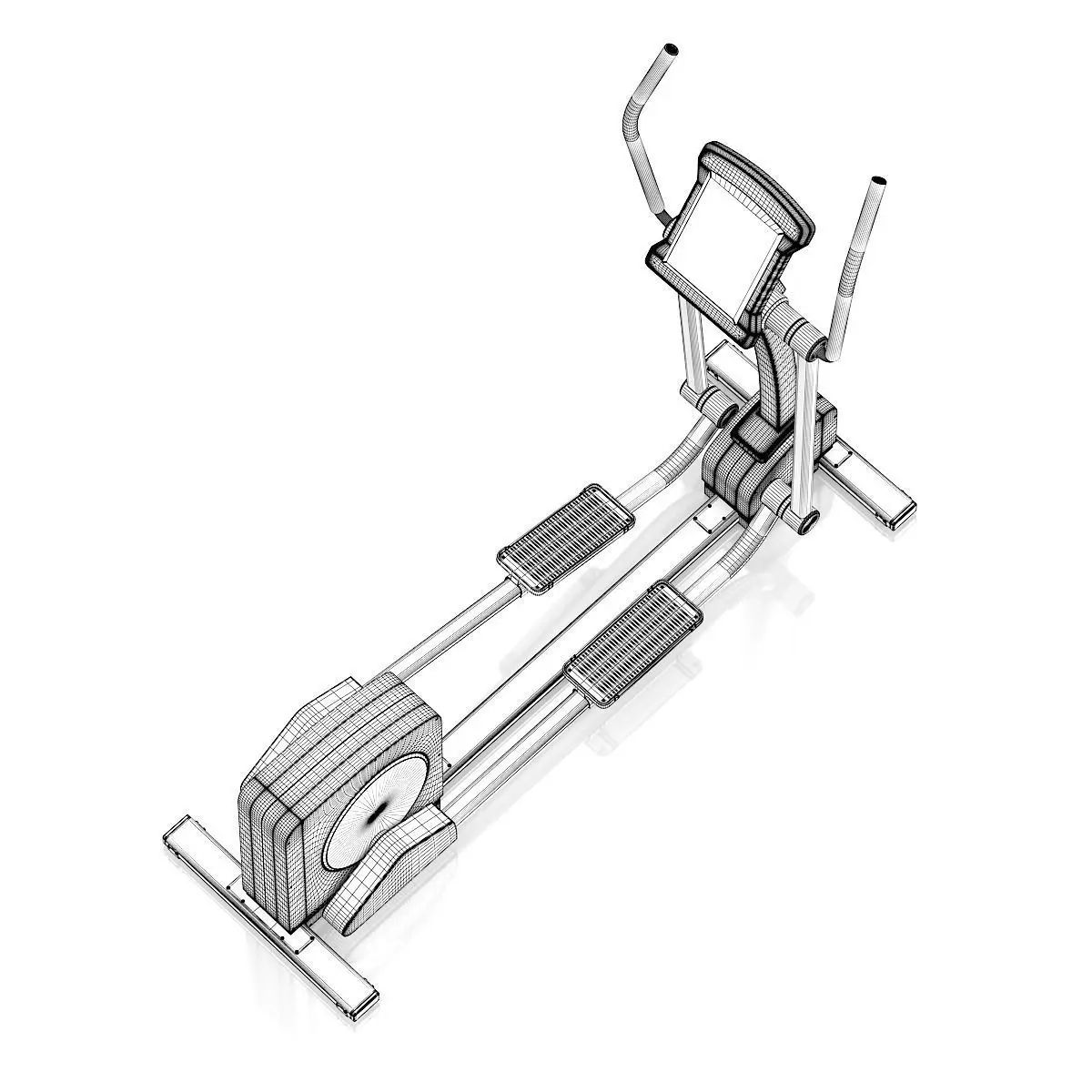 3d model of black and silver elliptical trainer with computer.