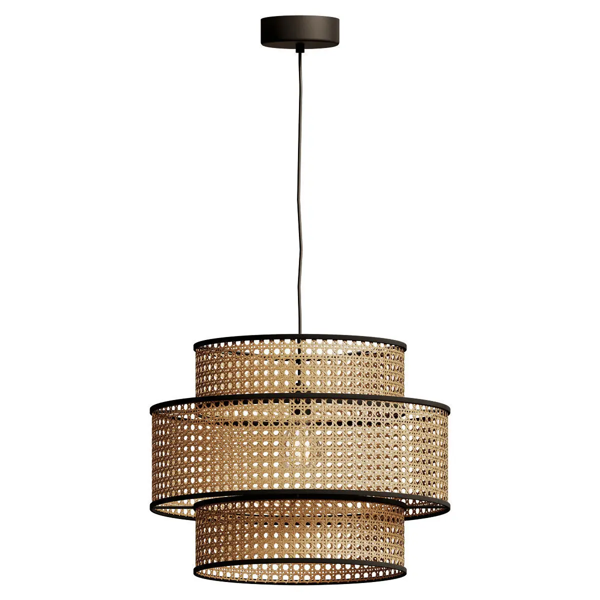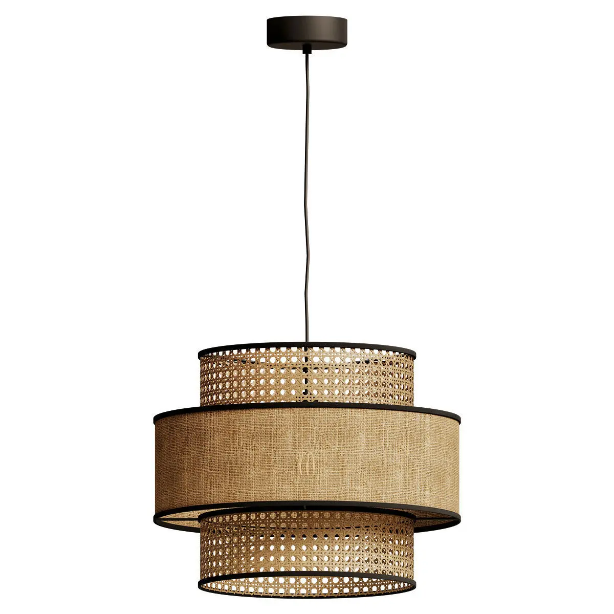 Loftlampe med skarmen af kunstrotting og stel af malet metal. Screen size: Diameter 40 cm, height 32 cm. Sort leding af plast,