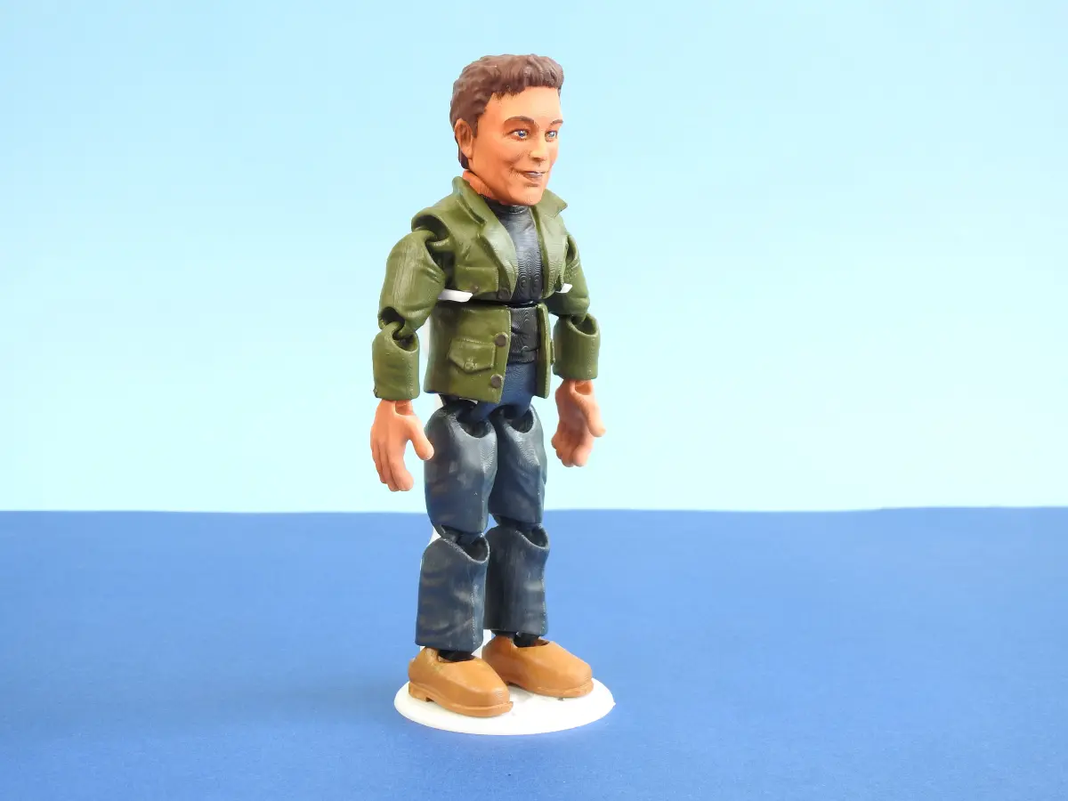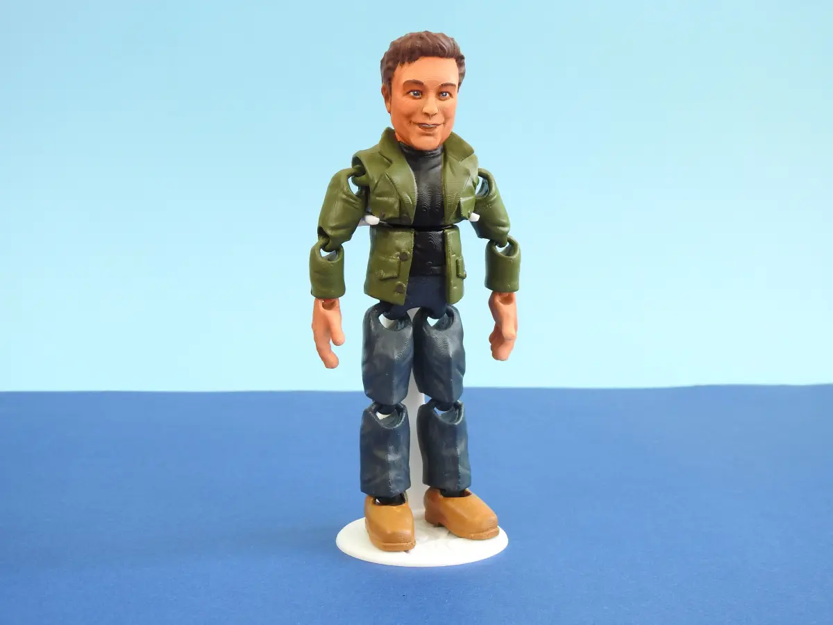Elon Musk print in place action figure by Oz Tails can be printed without supports and comes in low and high resolution versions.Also includes a two-part 3d printed stand for displaying Elon in a standing pose.https://youtube.com/shorts/9cS2isOtb8o?feature=shareMade by Oz Tails and LJC_Designs- all rights reserved.