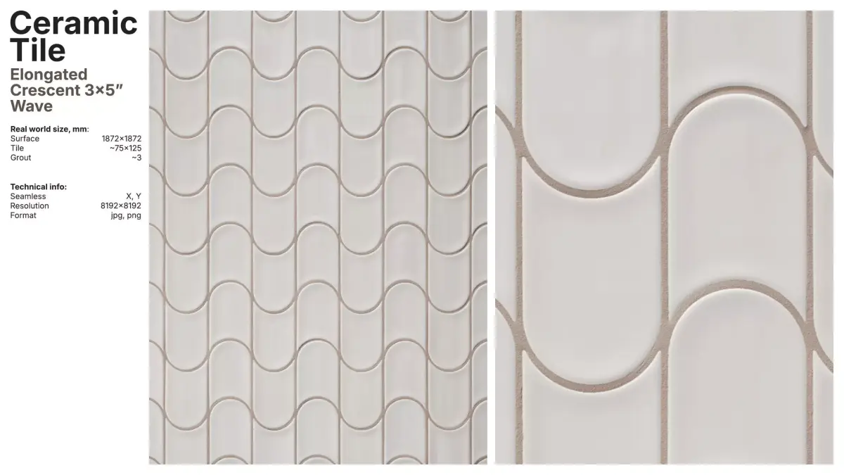The package includes 8 diffuse variations with matching grout tones, and a flexible color base that works out-of-the-box or as a starting point for custom looks.