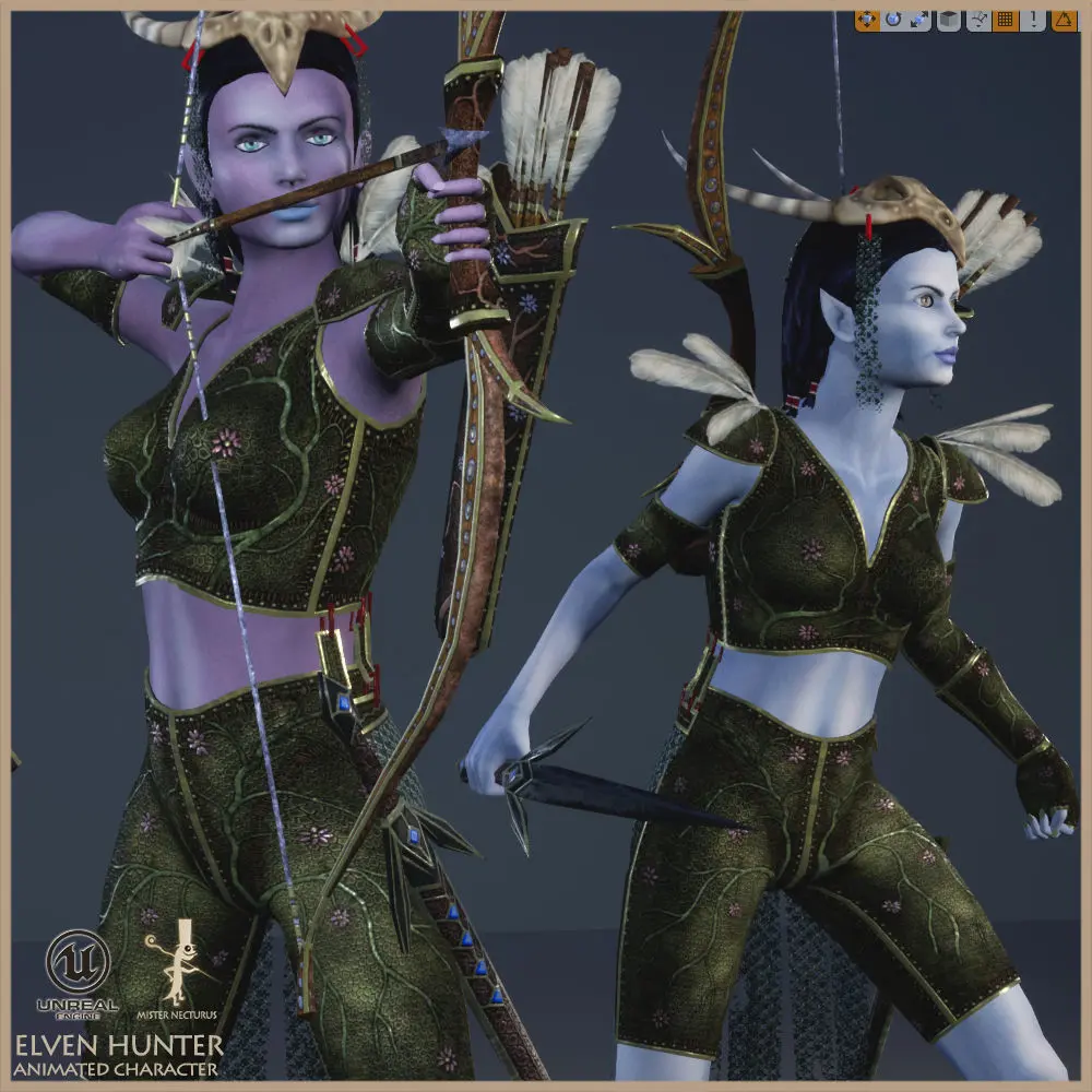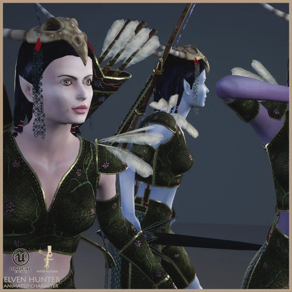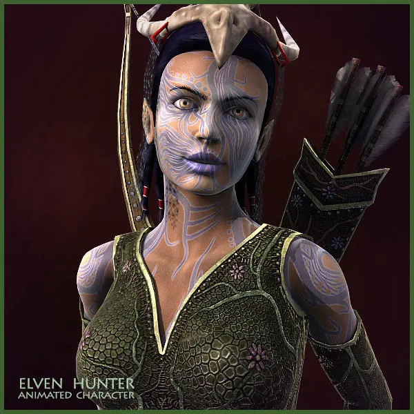 Elven Hunter low-poly 3d model rigged animated ready for Virtual Reality (VR), Augmented Reality (AR), games and other real-time apps.Light means rigged but not animated character in 3D MAX 2009.