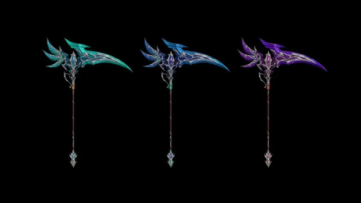 A scythe in an elven style that comes with two variants.