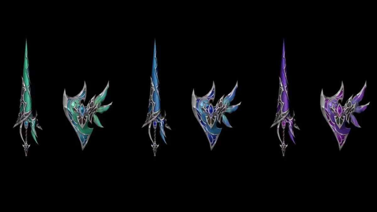 A set of a sword and a shield in an elven style that comes with two variants, for the price of only one model.