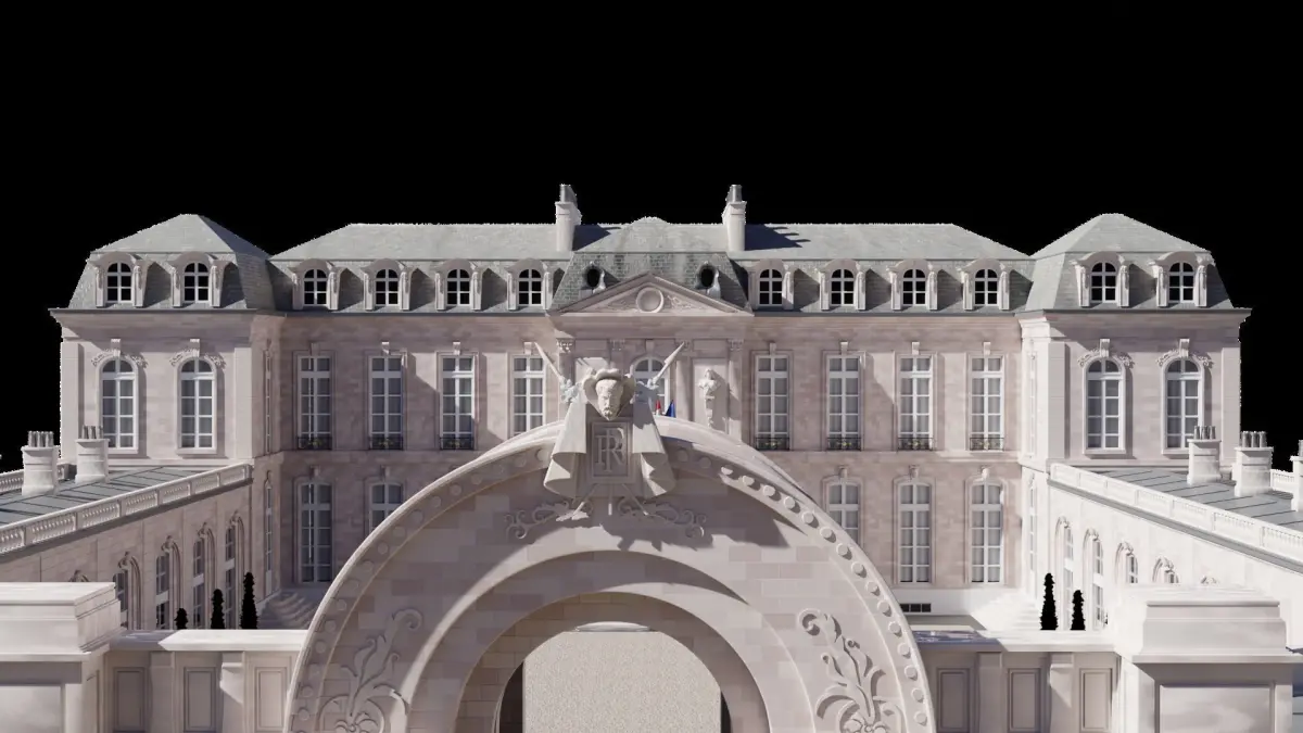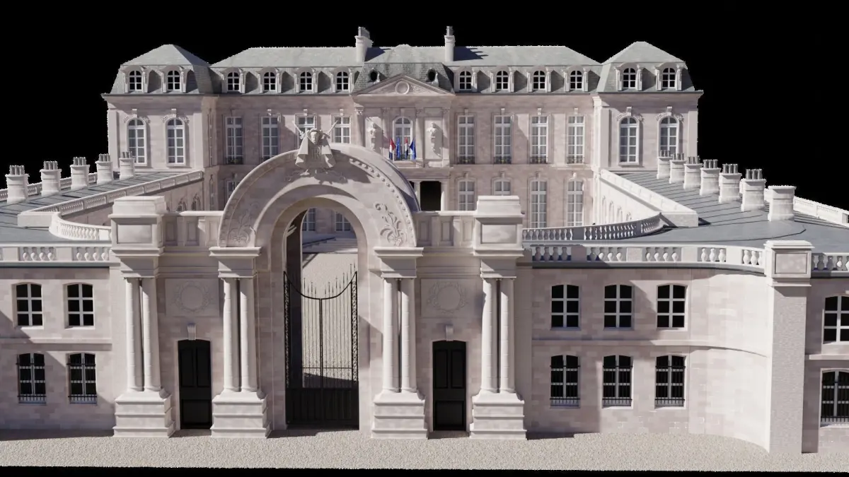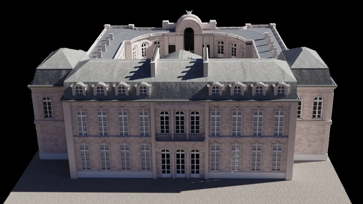 Elysee Palace : exterior walls without garden.Please don't ask for other format because of the size of the model. For exportations, download Blender (open source), open the model, and export by selecting File > Export (fbx, pbj, stl...)