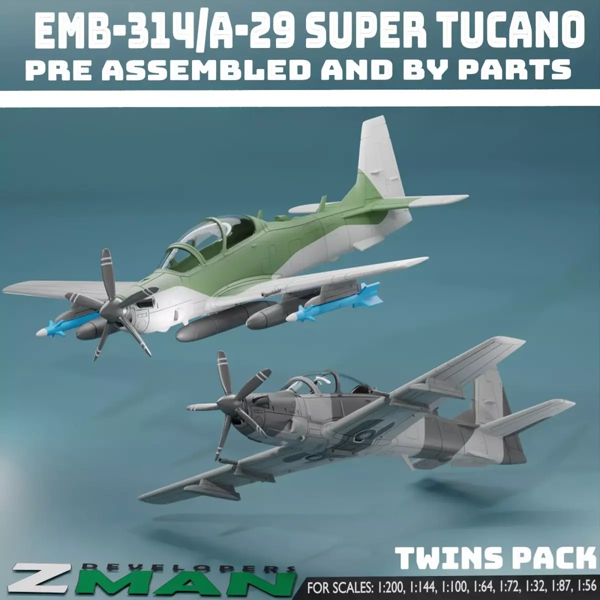 HI THERE, ITS EMB-314 (A-29 SUPER TUCANO) TWINS PACK V2 MODEL READY FOR PRINT........