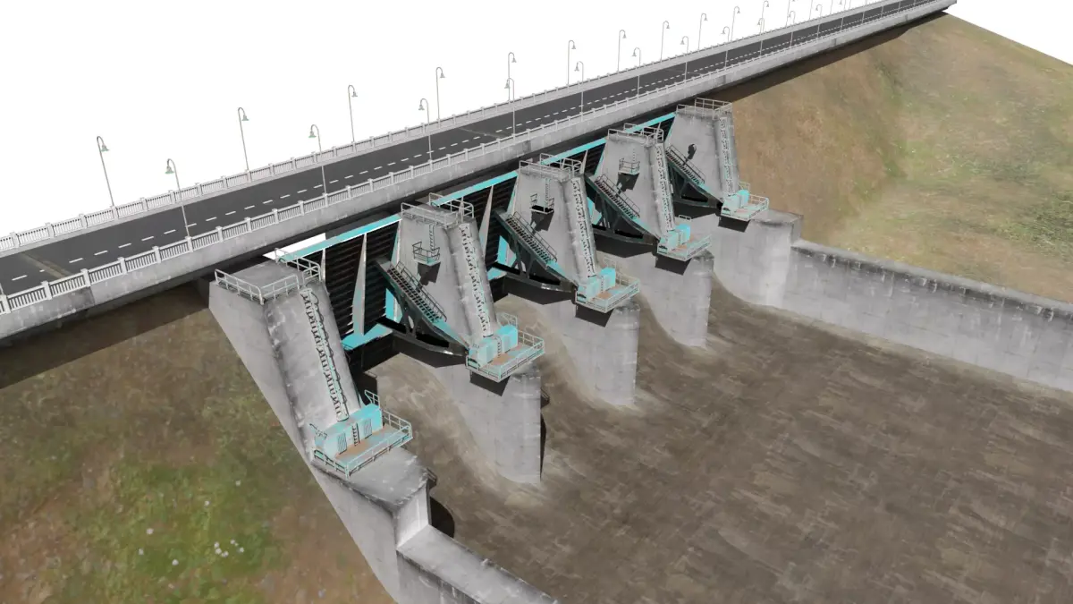 Embankment Earth filled dam modeled with blender 3.5. 85738 vertices and 127422 tris in all. 4 materials and 12 textures used. Textures are square size in 4k resolution. UV mapped. FBX and OBJ format supported.