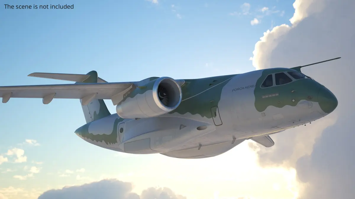 Embraer C 390 Millennium Military Aircraft Camo Rigged is a 3d model of a military transport aircraft, engineered for versatility and modern performance.