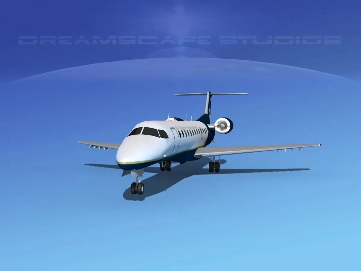 Embraer ERJ-135 Air Charter Intl This model is built near to scale based on actual dimensions. It is fully textured and moderately detailed model. This model has retractable landing gear, animateable ailerons, flaps, elevators, rudder, and turbines. It comes in several different formats.