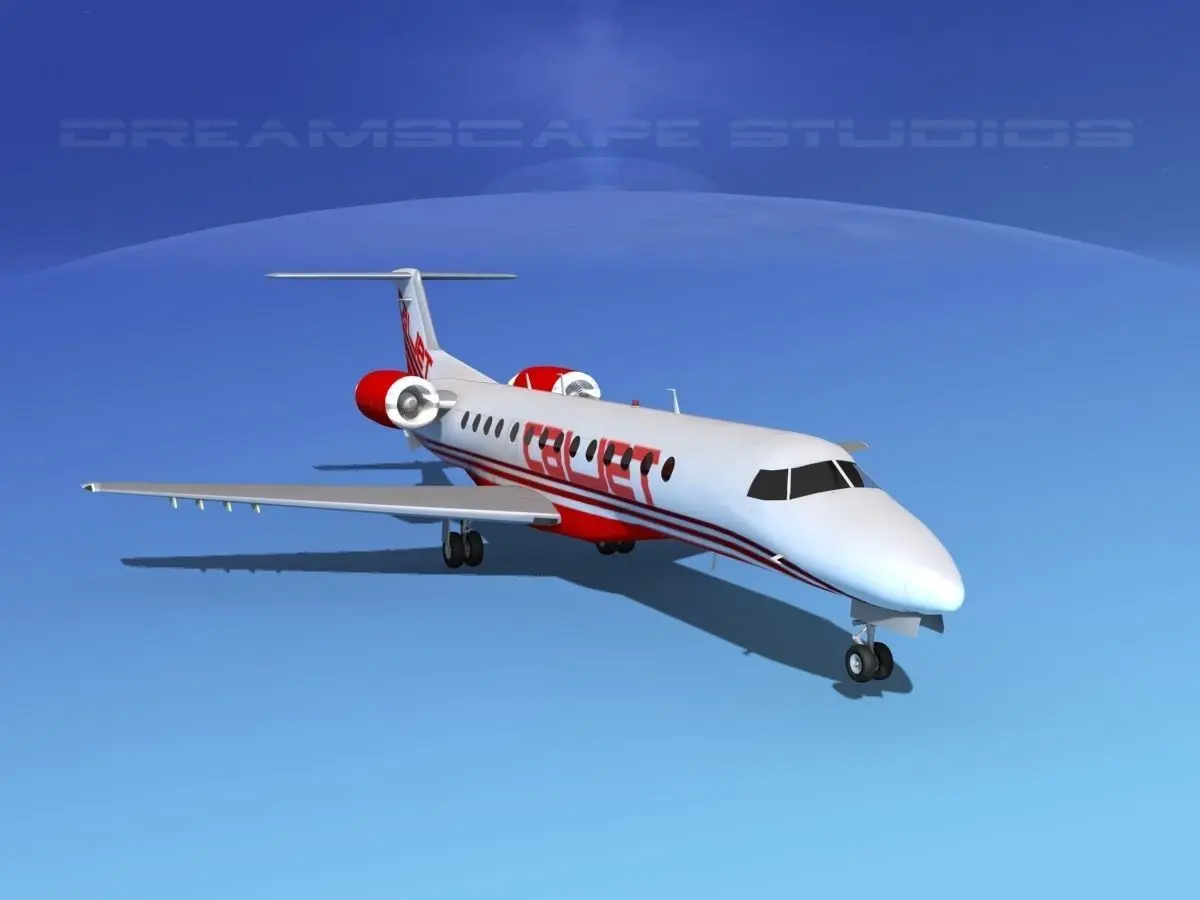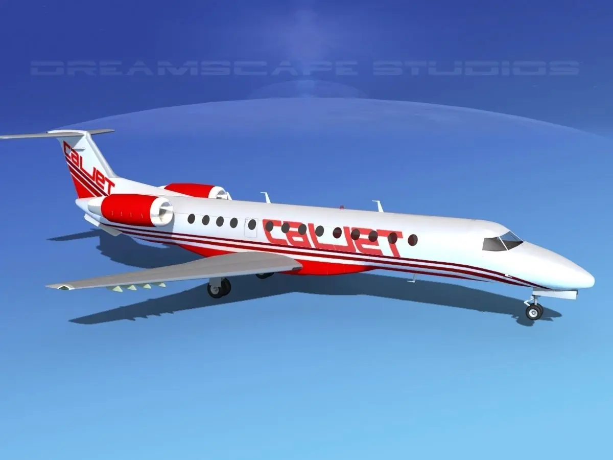 Embraer ERJ-135 CalJet This model is built near to scale based on actual dimensions. It is fully textured and moderately detailed model. This model has retractable landing gear, animateable ailerons, flaps, elevators, rudder, and turbines. It comes in several different formats.