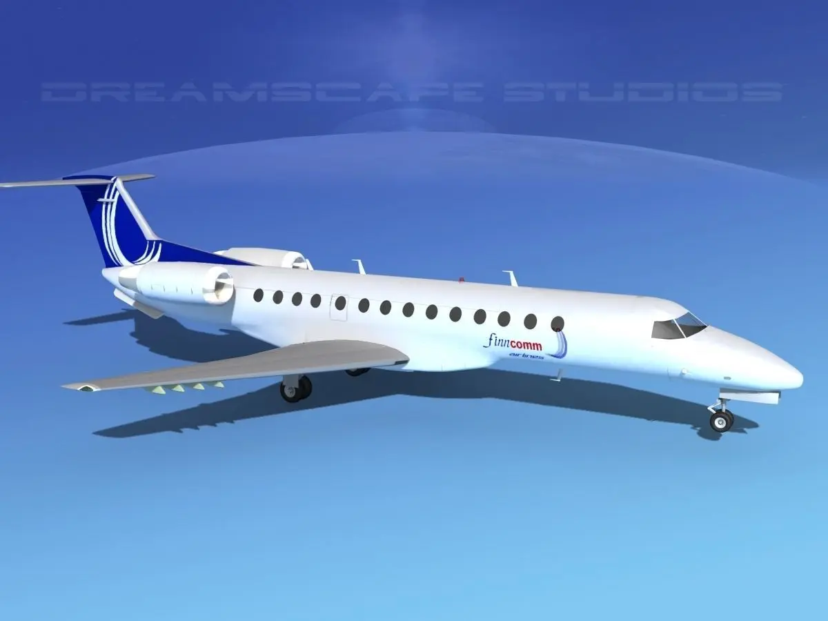 Embraer ERJ-135 Finnair This model is built near to scale based on actual dimensions. It is fully textured and moderately detailed model. This model has retractable landing gear, animateable ailerons, flaps, elevators, rudder, and turbines. It comes in several different formats.