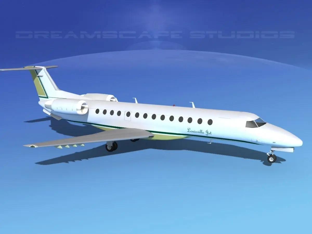 Embraer ERJ-135 Louisville Jet This model is built near to scale based on actual dimensions. It is fully textured and moderately detailed model. This model has retractable landing gear, animateable ailerons, flaps, elevators, rudder, and turbines. It comes in several different formats.