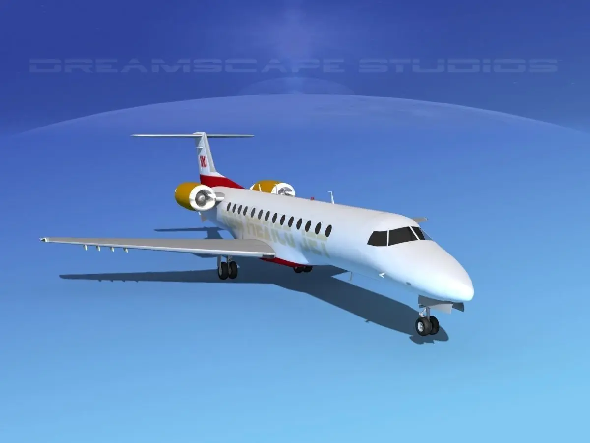 Embraer ERJ-135 New Mexico Jet This model is built near to scale based on actual dimensions. It is fully textured and moderately detailed model. This model has retractable landing gear, animateable ailerons, flaps, elevators, rudder, and turbines. It comes in several different formats.