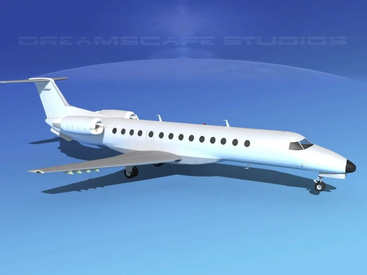 Embraer ERJ-135 Unmarked 2 This model is built near to scale based on actual dimensions. It is fully textured and moderately detailed model. This model has retractable landing gear, animateable ailerons, flaps, elevators, rudder, and turbines. It comes in several different formats.