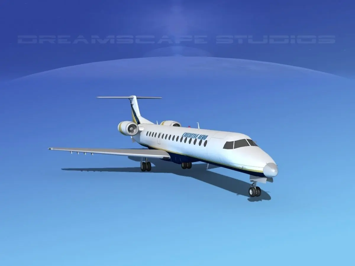 High resolution and accurate 3d model created near to scale (within 5%) according to the real reference. Native format is 3ds Max version 13. Model was exported to a wide variety of formats. Other formats are exported in one resolution. This can be further subdivided. Exported formats (3ds, lwo and obj) are prepared well to work correctly with every standard modeling software. Compatibility level with other software’s may be limited.This model has retractable landing gear, animateable ailerons, flaps, elevators, rudder, and turbines. Textures are included with all files. Previews were rendered using 3dsmax standard scanline. Model unit is variable depending on the model and references. The Embraer ERJ 140 family is a series of regional jets.