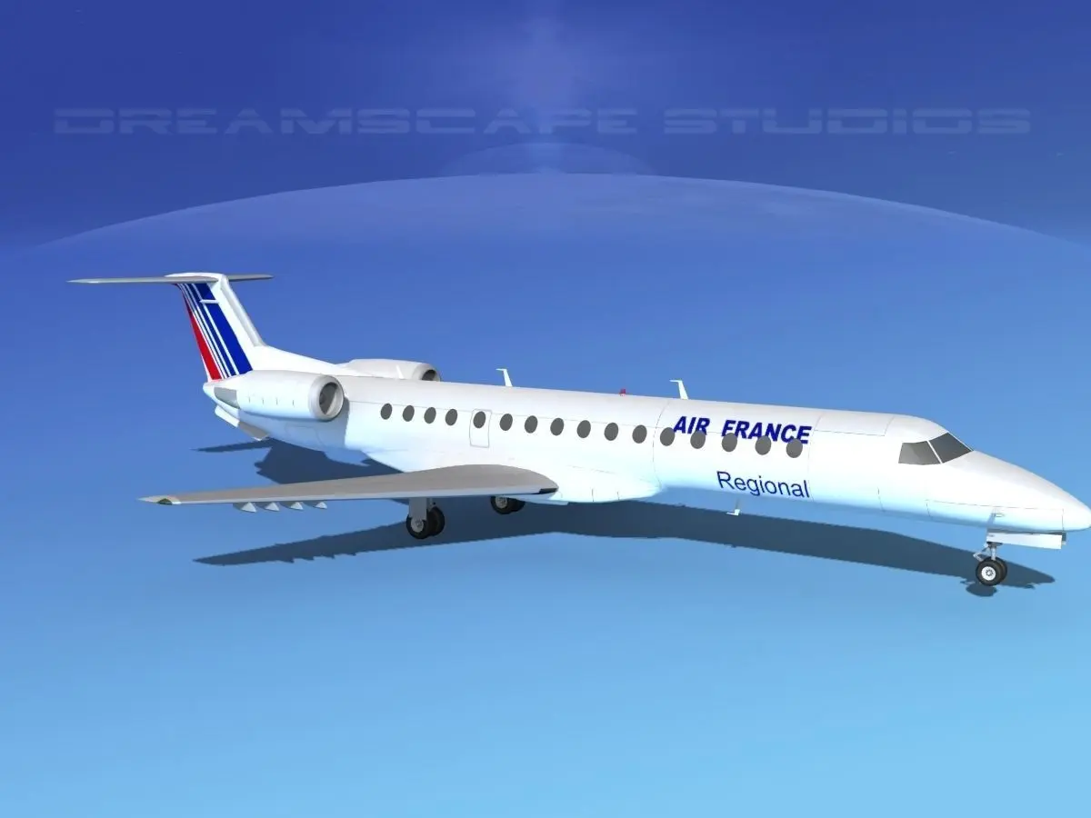 <High resolution and accurate 3d model created near to scale (within 5%) according to the real reference. Native format is 3ds Max version 13. Model was exported to a wide variety of formats. Other formats are exported in one resolution. This can be further subdivided. Exported formats (3ds, lwo and obj) are prepared well to work correctly with every standard modeling software. Compatibility level with other software’s may be limited.This model has retractable landing gear, animateable ailerons, flaps, elevators, rudder, and turbines. Textures are included with all files. Previews were rendered using 3dsmax standard scanline. Model unit is variable depending on the model and references. The Embraer ERJ 140 family is a series of regional jets.