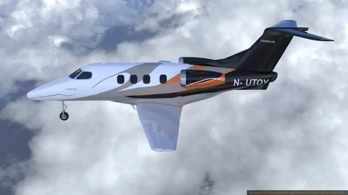 Phenom 100 private jet detailed 3d model. Originally created in 3ds max 2017 scanline render then exported to popular formats. Texture size 4096X4096 UV unwrapped