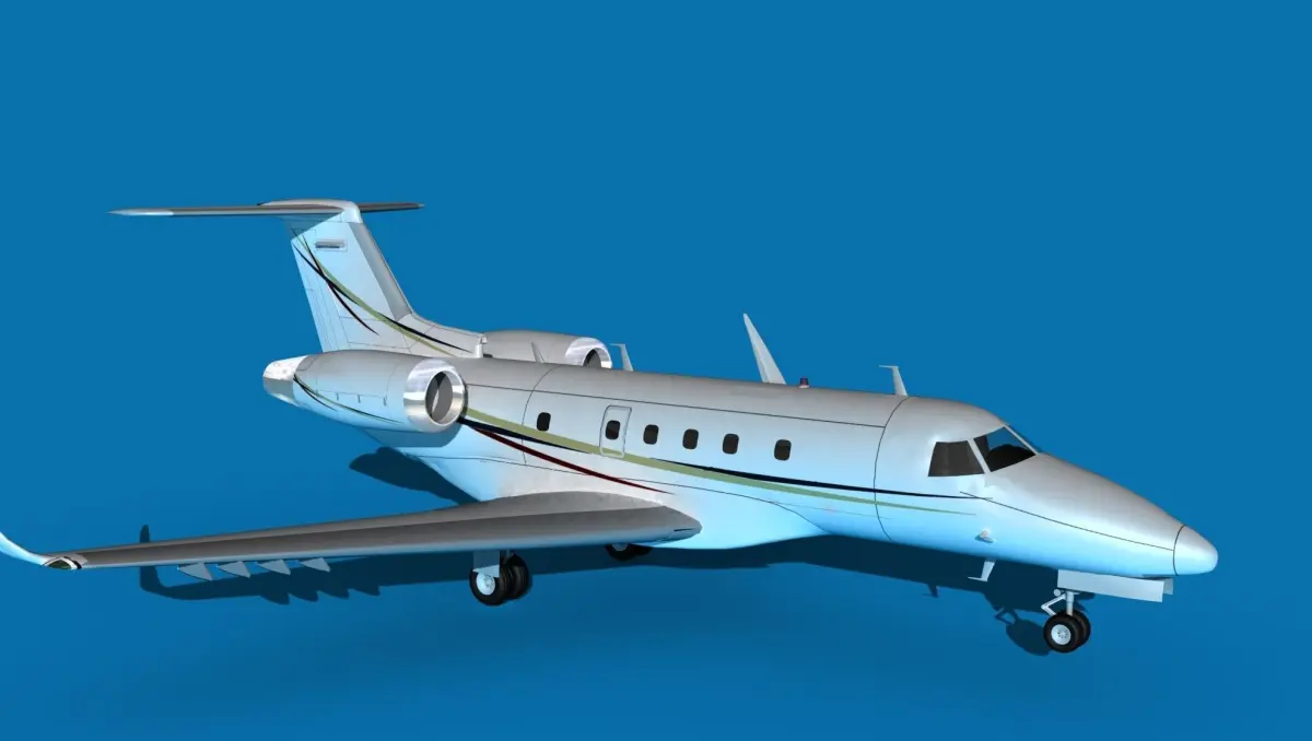 Originally a further development of Embraer Legacy 500 and 600s, it features a 6 foot tale cabin interior, flat floor cabin, stone flooring and a vacuum service lavatory. It also had fly by wire, nice range of 2900NM, and accommodations up to 9 or 12 depending on configuration. It first flew in 2012.This model was built near to scale in real units and built based on drawings, photos, and other documents. This model has a moderately detailed cockpit and the following animateable features; ailerons, elevators, rudder, and wheels. These models render very well and look very realistic using good animation, lighting and rendering technique. It can be used in an animated or static position within a scene, animation or animated video, or possibly programming for a flight simulation application. This model was not designed for 3d printing, these are to be used as digital files only. If you purchase one for digital printing we do not guarantee that your print will be successful.Exporting of models is limited but good for several software applications. This model is fully textured with all materials UVW mapped and applied. Most materials are planar mapped and major materials include texturing. All textures and materials are included as shown. Objects are logically named for ease of scene management.No cleaning up necessary, just drop your models into the scene and start rendering.No special plug-ins are needed to open scene.In most cases the liveries are based on actual service liveries or paint schemes. Many of the units, airlines or countries who flew the plane are represented here. Dreamscape Studios is a US 3d modeling firm specializing in building high definition, accurate, and detailed 3D models of commercial, civilian, and military airplanes, ships, buildings and other subjects.Dreamscape 3d models are built in ultra-low to ultra-high polygon count, (most often) near to scale and include a good amount of detail based on the resolution target. If you have a question, error or problem with the model, let us know and we will do our best to provide or get a solution for you. Be advised our models are not designed for 3d printing unless they are advertised for that purpose.