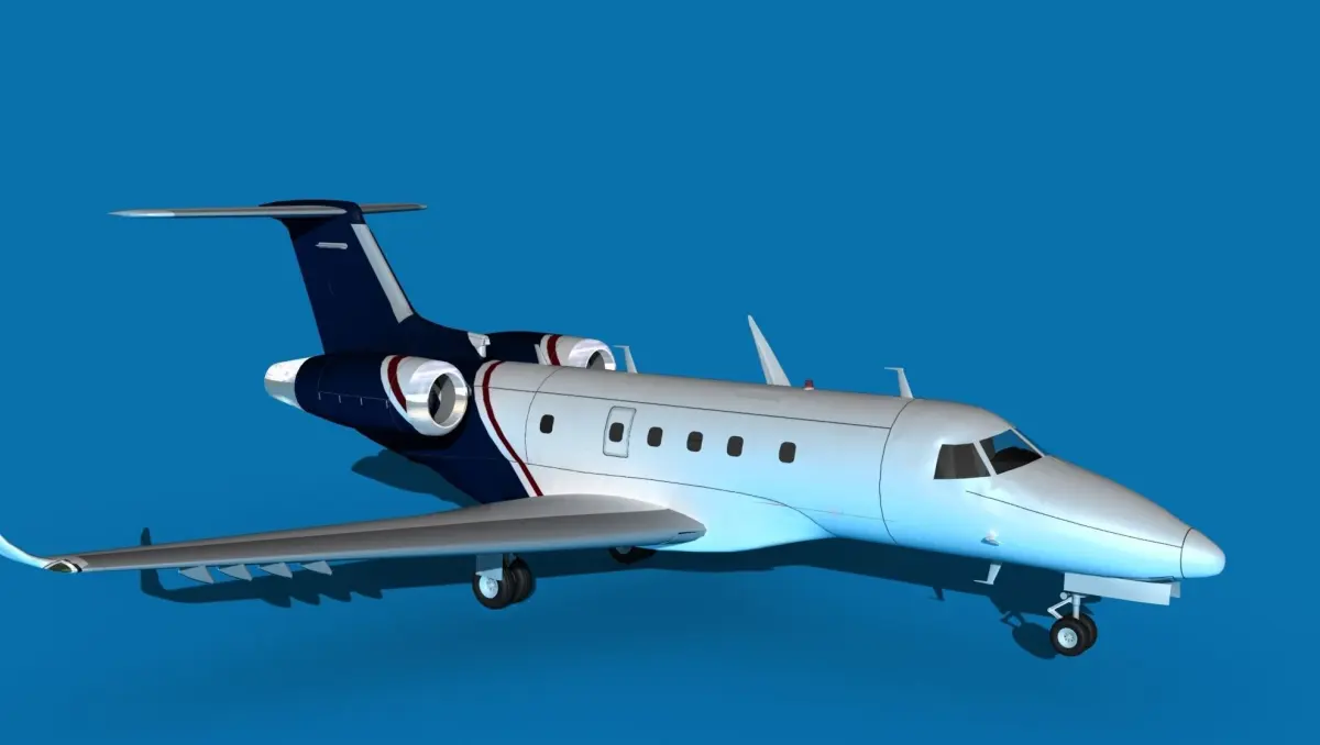 Originally a further development of Embraer Legacy 500 and 600s, it features a 6 foot tale cabin interior, flat floor cabin, stone flooring and a vacuum service lavatory. It also had fly by wire, nice range of 2900NM, and accommodations up to 9 or 12 depending on configuration. It first flew in 2012.This model was built near to scale in real units and built based on drawings, photos, and other documents. This model has a moderately detailed cockpit and the following animateable features; ailerons, elevators, rudder, and wheels. These models render very well and look very realistic using good animation, lighting and rendering technique. It can be used in an animated or static position within a scene, animation or animated video, or possibly programming for a flight simulation application. This model was not designed for 3d printing, these are to be used as digital files only. If you purchase one for digital printing we do not guarantee that your print will be successful.Exporting of models is limited but good for several software applications. This model is fully textured with all materials UVW mapped and applied. Most materials are planar mapped and major materials include texturing. All textures and materials are included as shown. Objects are logically named for ease of scene management.No cleaning up necessary, just drop your models into the scene and start rendering.No special plug-ins are needed to open scene.In most cases the liveries are based on actual service liveries or paint schemes. Many of the units, airlines or countries who flew the plane are represented here. Dreamscape Studios is a US 3d modeling firm specializing in building high definition, accurate, and detailed 3D models of commercial, civilian, and military airplanes, ships, buildings and other subjects.Dreamscape 3d models are built in ultra-low to ultra-high polygon count, (most often) near to scale and include a good amount of detail based on the resolution target. If you have a question, error or problem with the model, let us know and we will do our best to provide or get a solution for you. Be advised our models are not designed for 3d printing unless they are advertised for that purpose.
