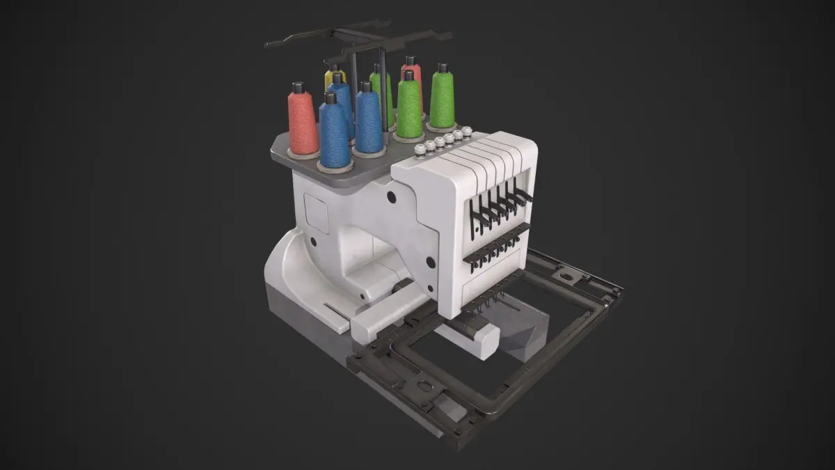 Game-ready Embroidery Machine asset, with PBR textures included in the files. This has 3745 polys (7192 tris) and 4025 vertices. Note: changing the normal mesh settings in the native Maya file is not recommended.