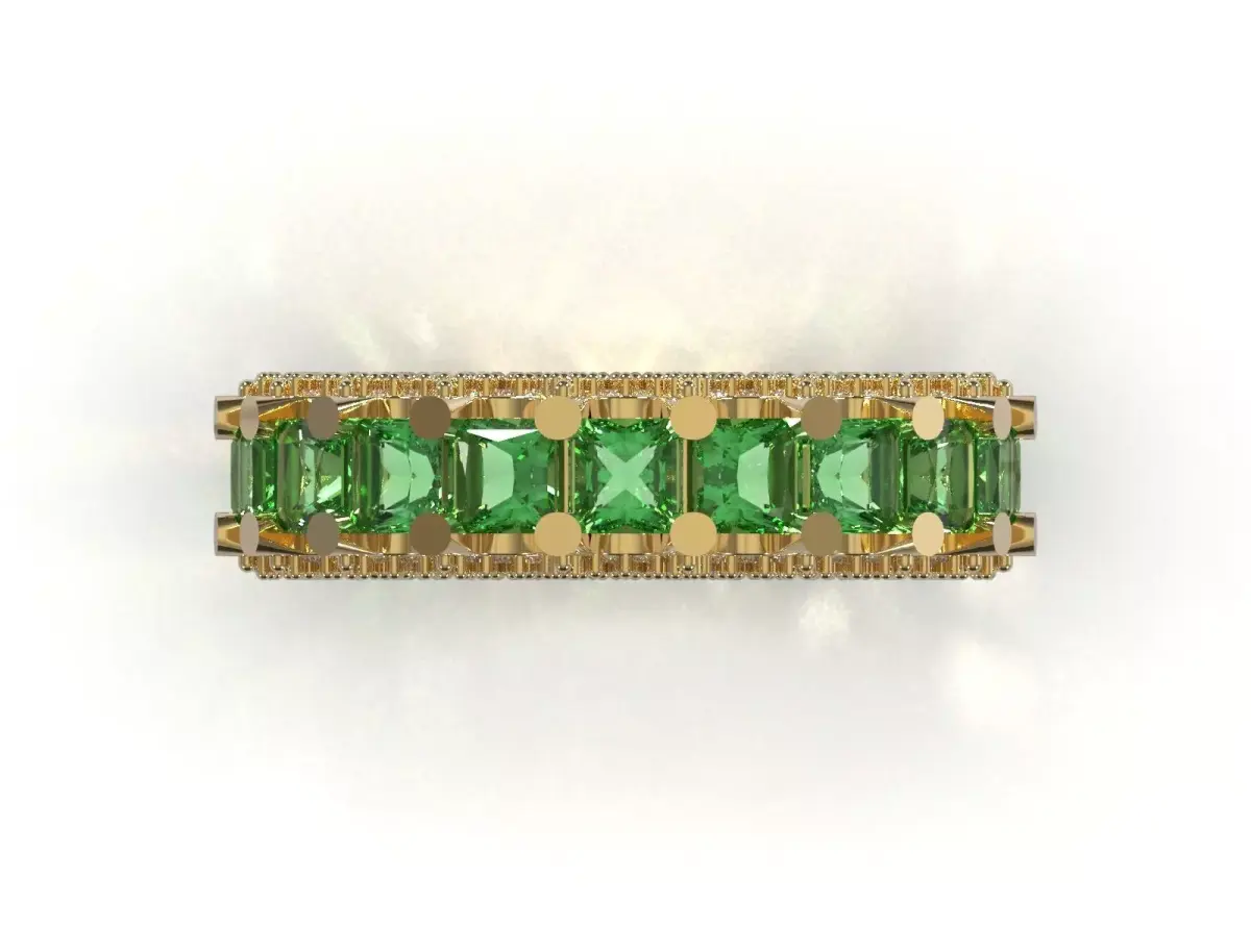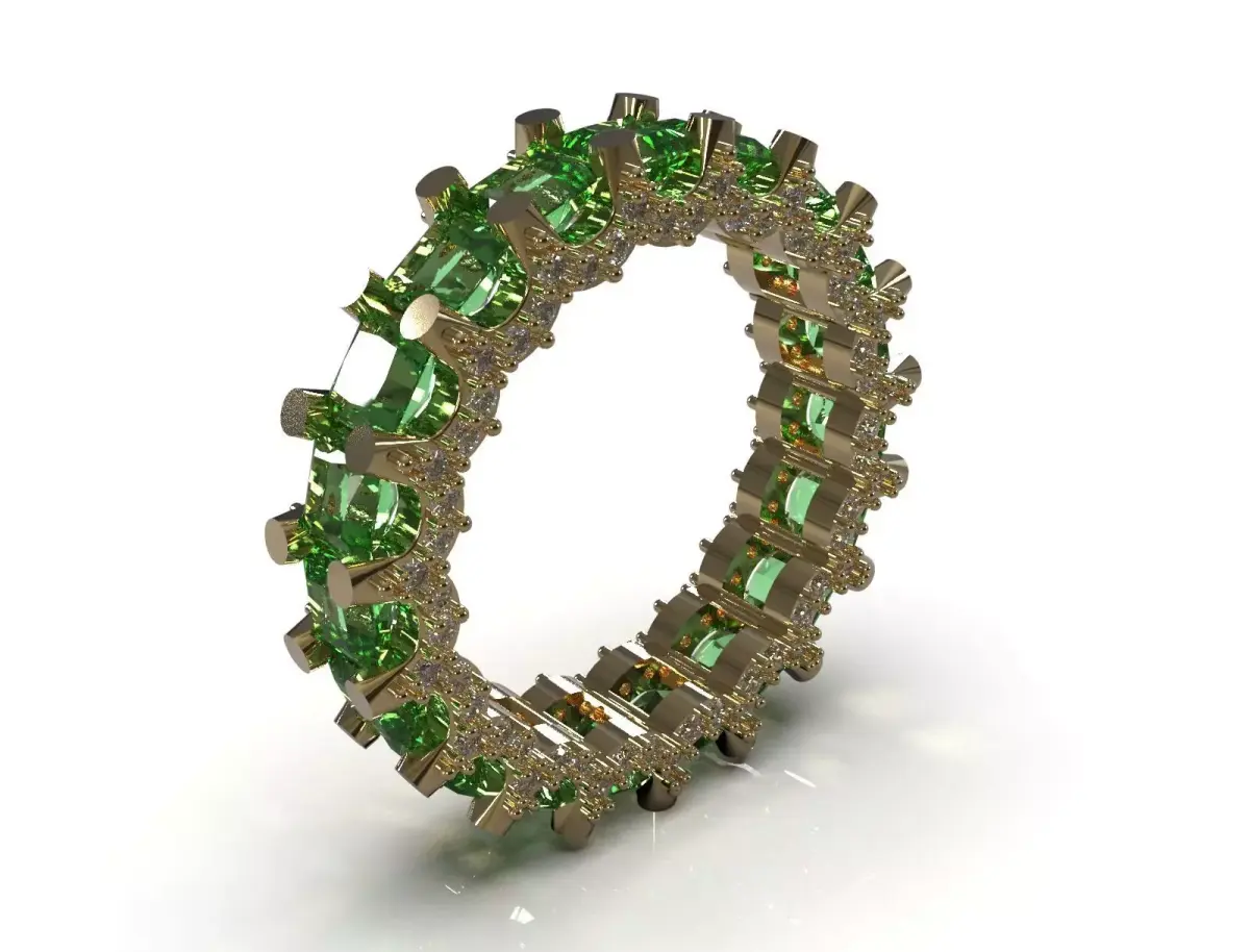 Sales Title: Full Eternity Ring File Ready to Make with Emeralds and Side Cut; Aristocratic Design for Special Productions