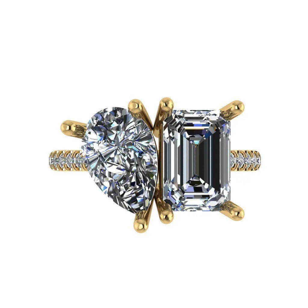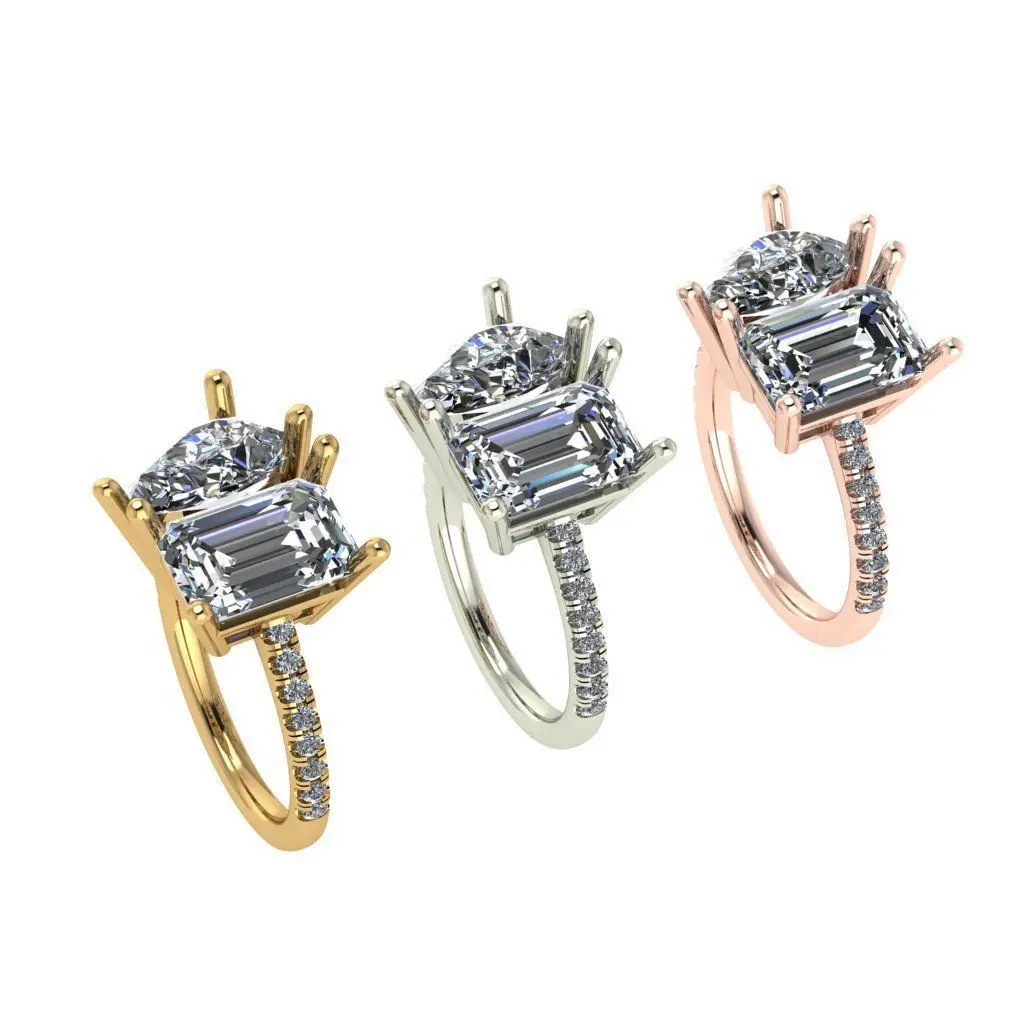 Emerald and pear cut 2 stone diamond ring 3D print model