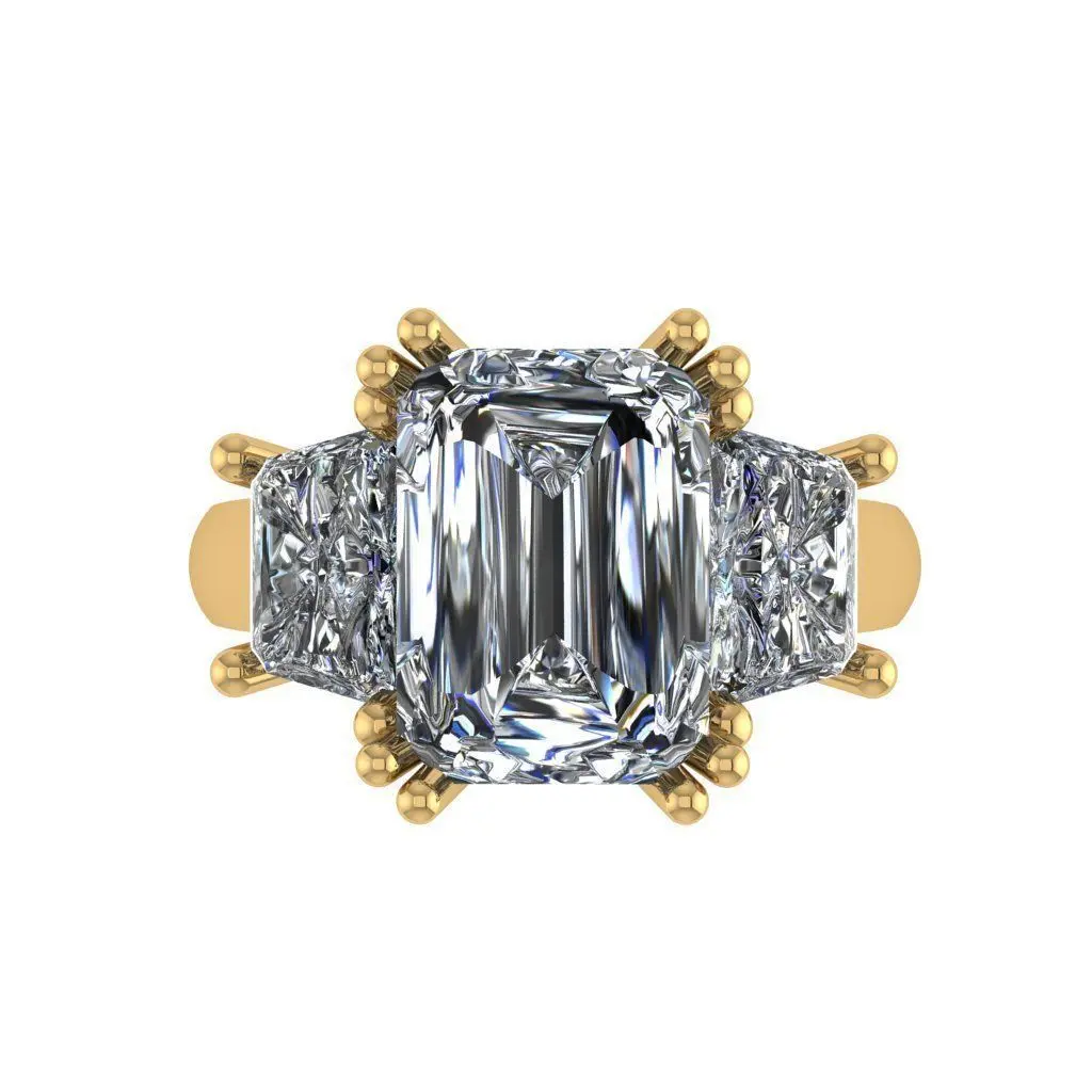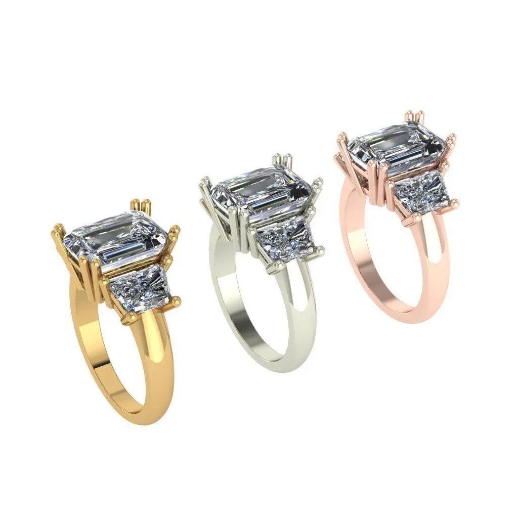 Emerald cut 3 stone diamond ring 3D print model