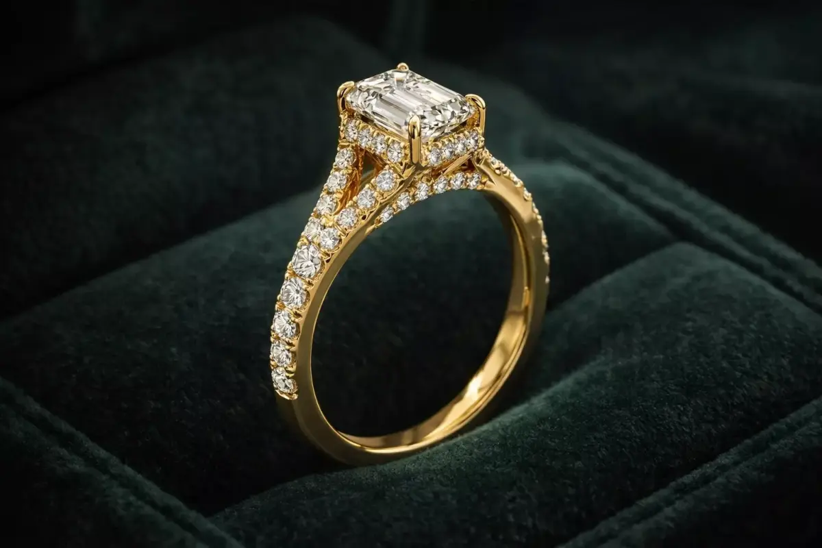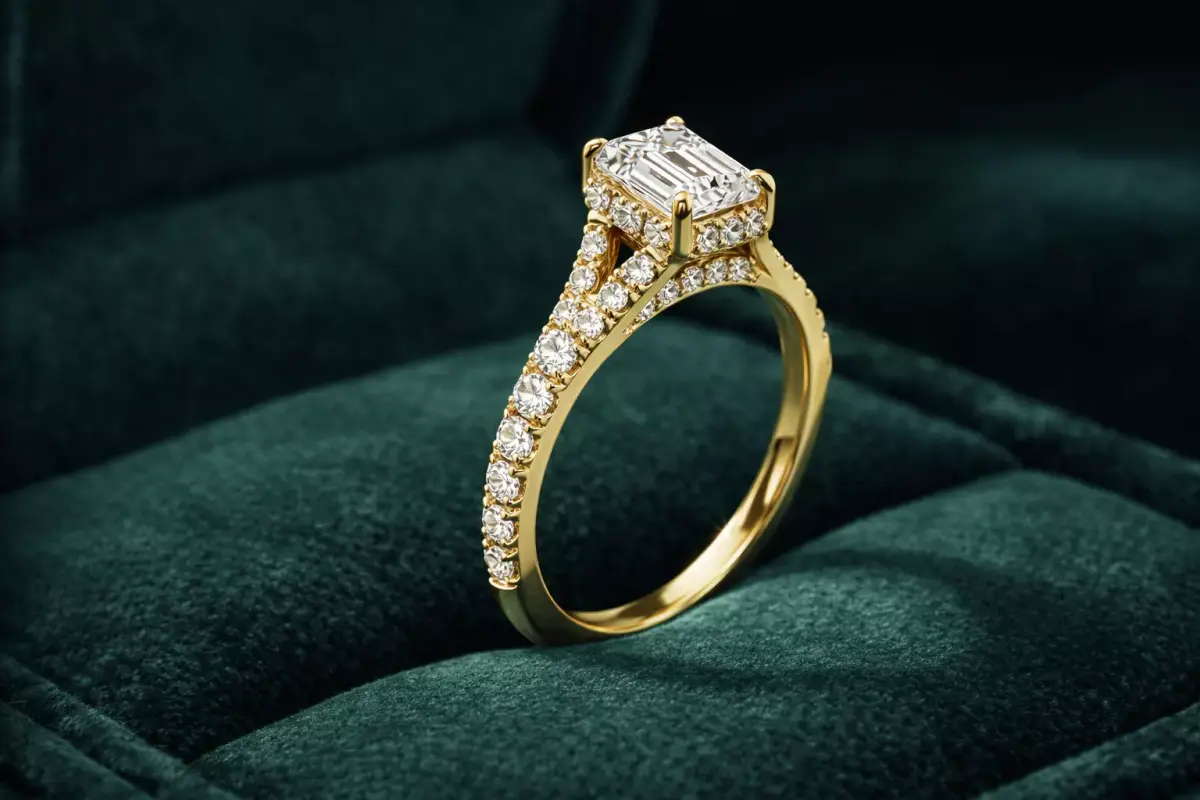 Beautiful Emerald Cut Cathedral Ring Split Shank Hidden Halo CAD - A Gorgeous Selection.