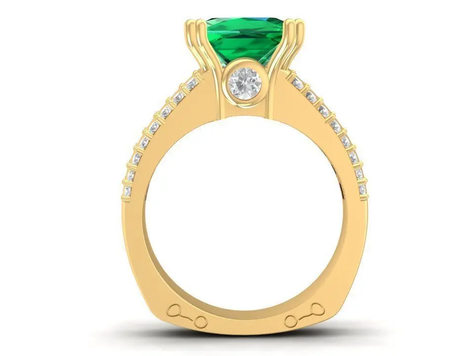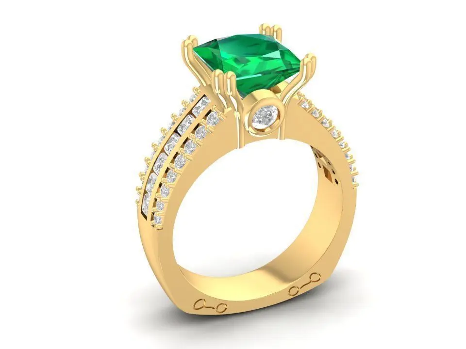 This is a 3D model of an emerald diamond engagement ring for women. The design features a stunning emerald-cut center stone highlighted by a pavé diamond band, creating a luxurious and timeless look. The ring represents eternal love and commitment, making it a perfect choice for engagement or anniversary celebrations.