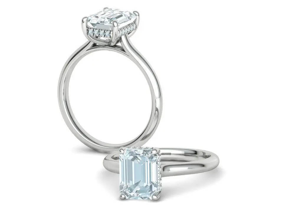 Emerald Diamond Engagement Ring Hidden Halo Ring 9x7 Emerald 3D print model
