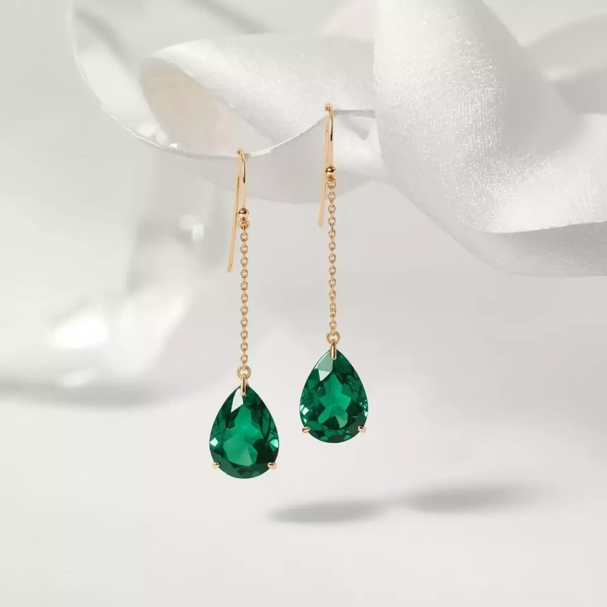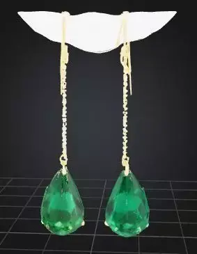Bring timeless beauty to life with the Emerald Elegance Teardrop Dangle Earrings – a masterfully designed 3D jewelry model perfect for fine jewelry production or luxury rendering projects. These earrings feature delicate gold chains that gracefully suspend vivid pear-cut emerald stones, creating a harmonious dance of light and movement.