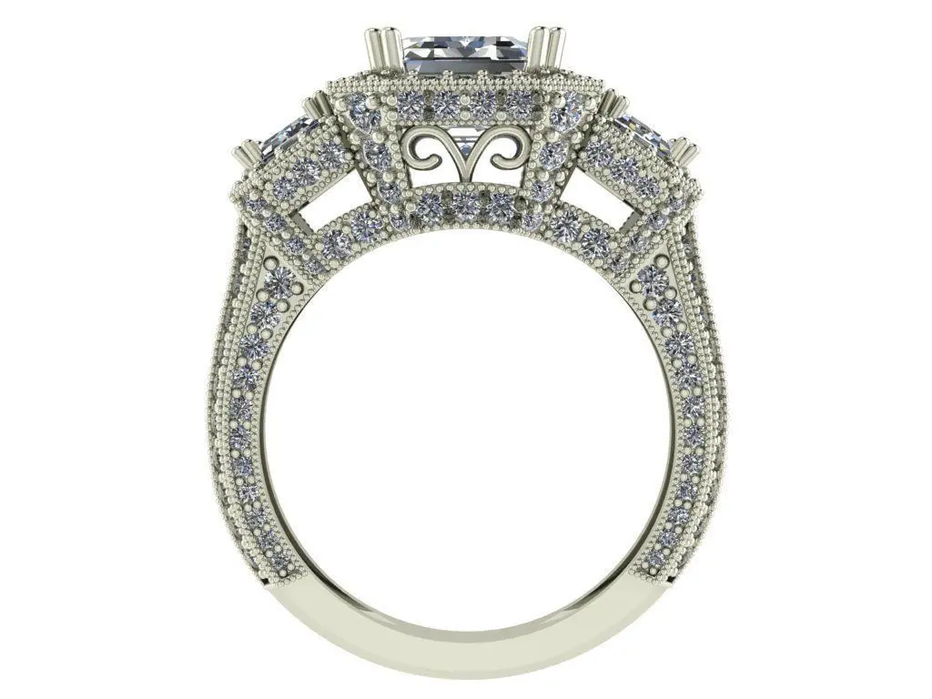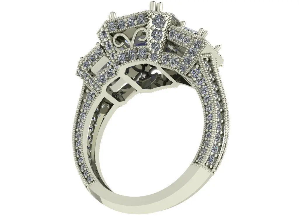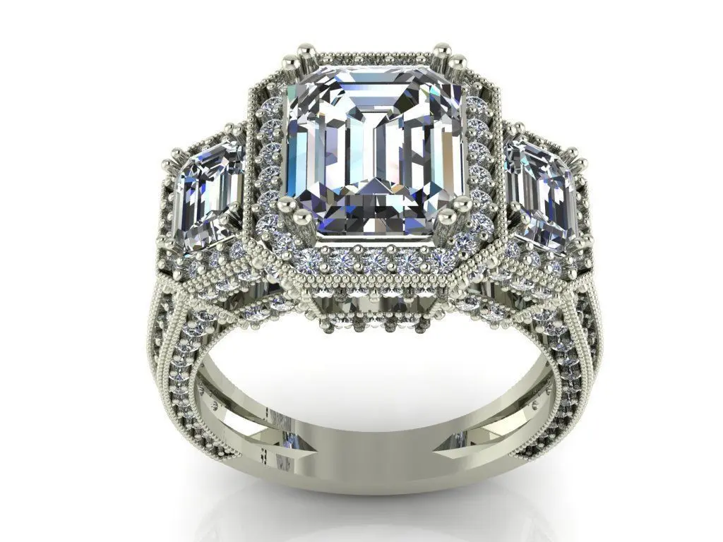 A .rar file with complete a Emerald engagement ring with formats .3dm .obj .stl Preferred metals are gold and silver