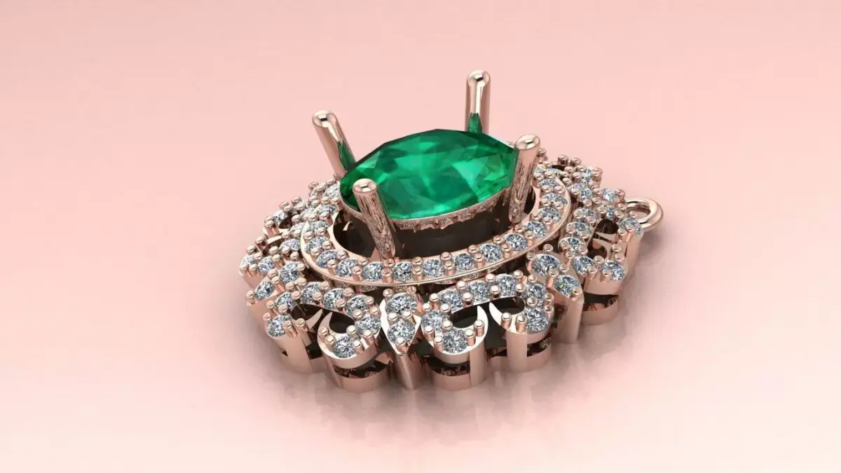 Emerald Grandeur Pendant jewelry 3D model - for Her
