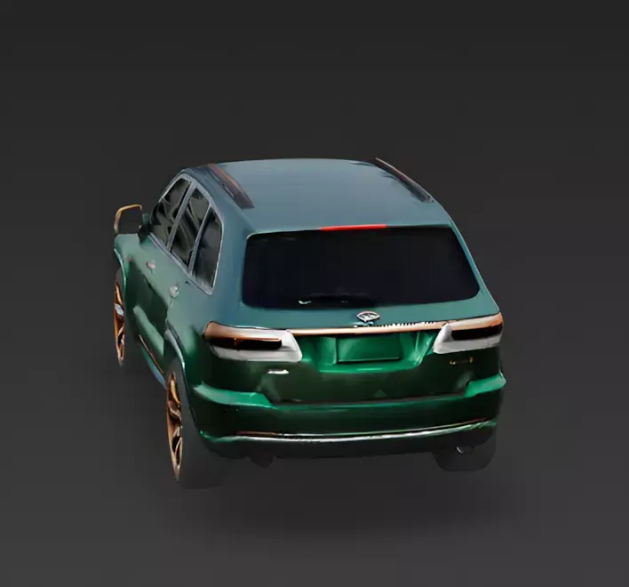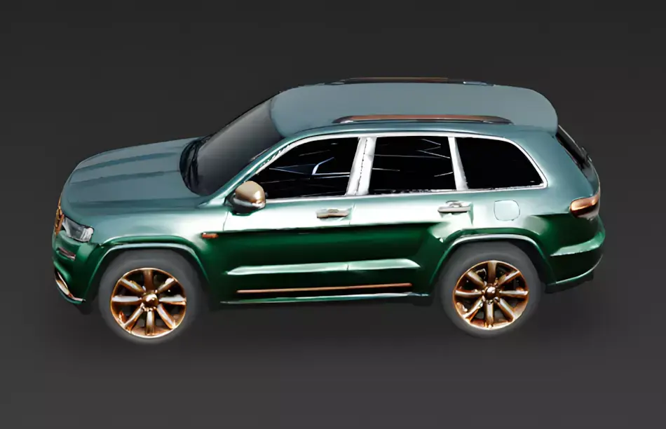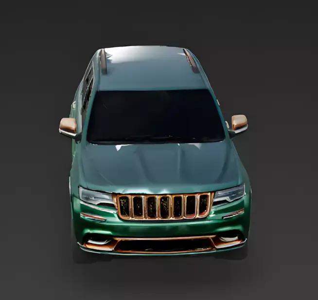 The Overall Concept This asset is a high-end custom SUV, resembling a modern Jeep Grand Cherokee. It combines a unique color palette with premium materials to create a vehicle that looks like it belongs to a fashion designer or a trendsetter.