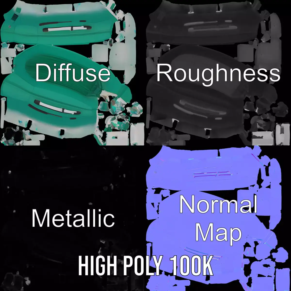 Discover the Emerald Inflatable Boat model pack, featuring a sleek, modern design perfect for maritime adventures. Each model has 3 levels of detail: low-poly (1000 triangles for mobile), middle-poly (10,000 triangles for environment), and high-poly (100,000 triangles), which allows for the use of this model in production rendering (such as 3ds Max, Maya, Cinema4D, Blender, Vray/Corona/Cycles, and all others), game engines (Unity and Unreal compatible), and interactive presentations, providing a choice of detail based on the LOD System principle. Ideal for simulations, gaming environments, or realistic virtual displays, this model offers exceptional versatility. The model's textures are PBR, Diffuse, NormalMap, and reflection/roughness/metallic, which are suitable for any modern rendering engine. All models are accurately unwrapped and have no overlapping UVs. All textures are 4096x4096 in size. If you enjoy this model, please like and leave a comment.